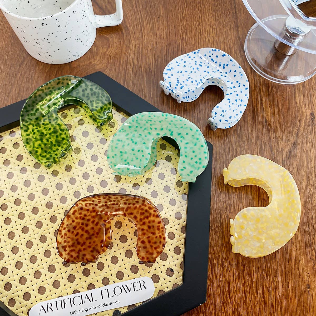 ? Size: 9 cm / 3.54 in\n? Material: Acetate\n? Design Elements: Irregular bean-shaped patterns ???\n? Style: Artistic and colorful, perfect for playful styling or adding a vibrant accent to your daily look\n\n#acetatehairclip #colorfulclip #beanclip #vibrantstyle #artisticaccessory #9cmclip\nTypes of products that will be on the shelves during this period:\nHair claw clip set, large hair claw clip, flower hair claw, boho claw clip, pearl hair claw, modern hair claw, rhinestone claw clip, colorful hair claw, hair clips claw, hair clips for women, wholesale hair clips, bulk hair clips, hair clip display, clips for hats, clips for kids, mini hair clips, trendy hair clips, fashion hair claws, strong hold hair clip, acrylic claw clip.