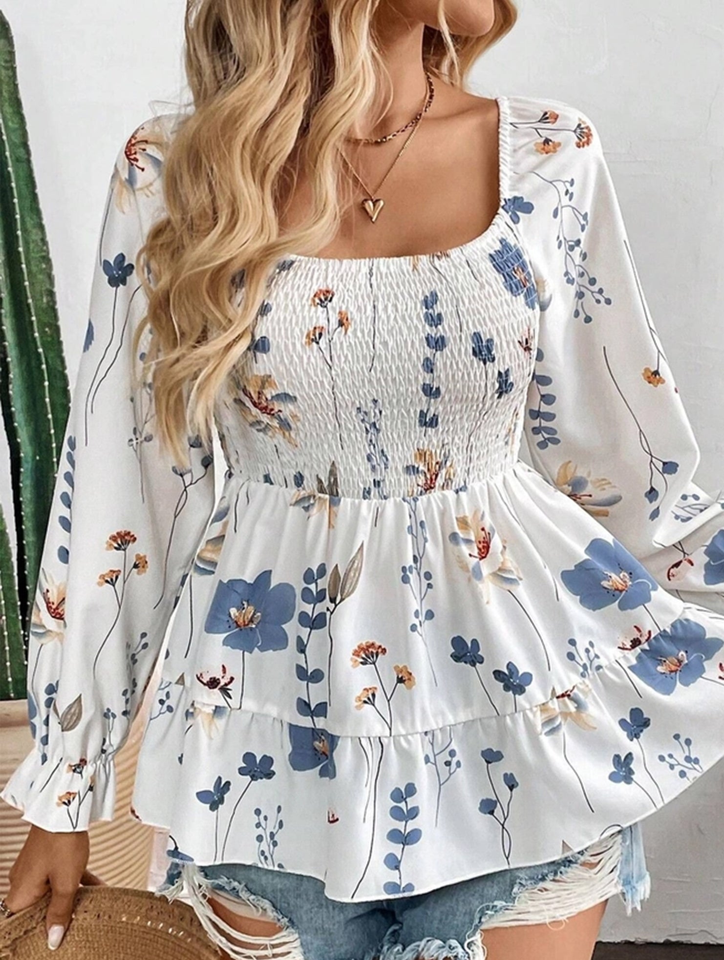 Elegant Floral Print Long-Sleeve T-Shirt_RCDQ01356
