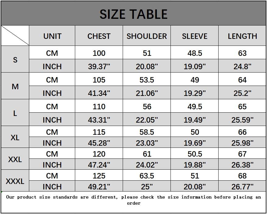 SIZES : S,M,L,XL,XXL,XXXL