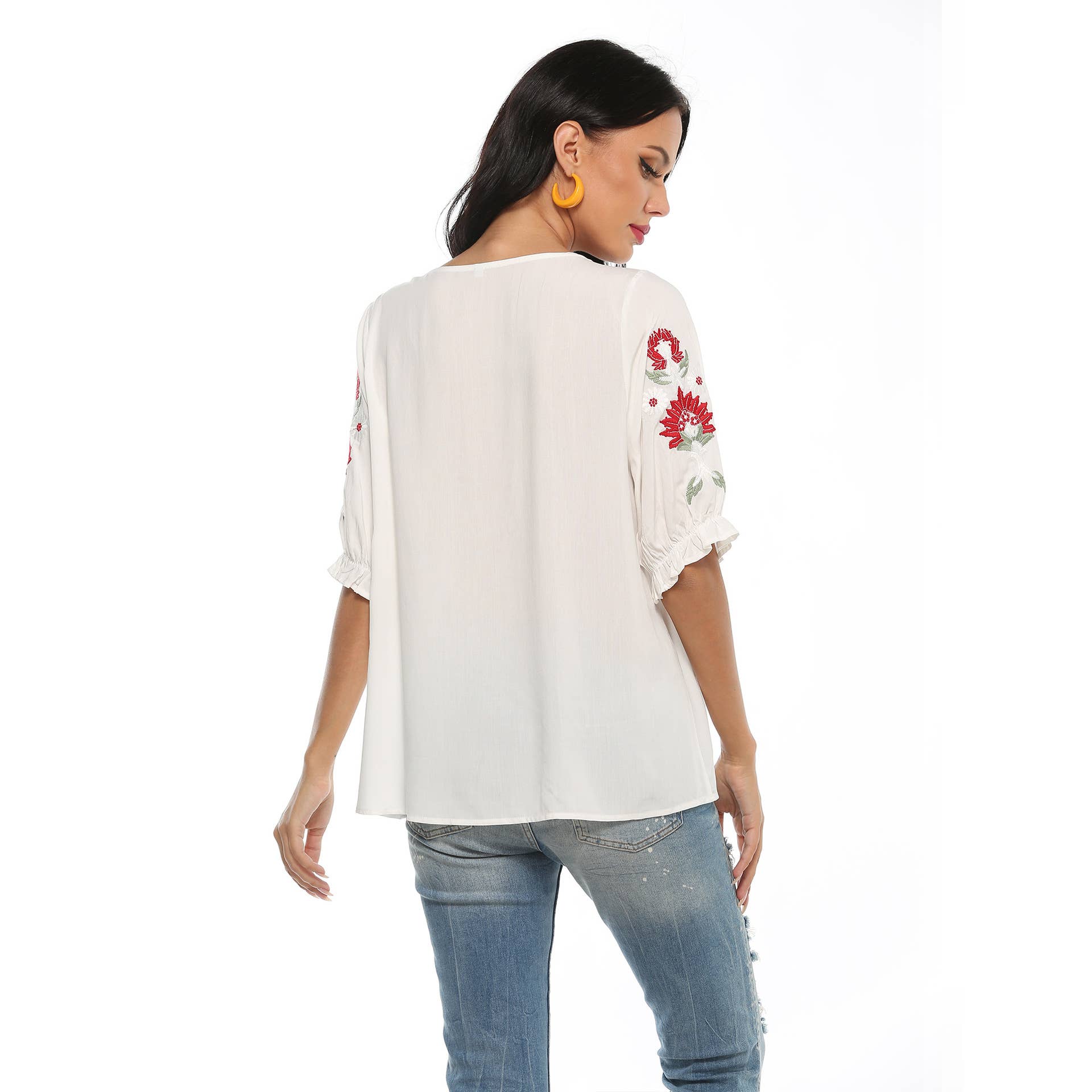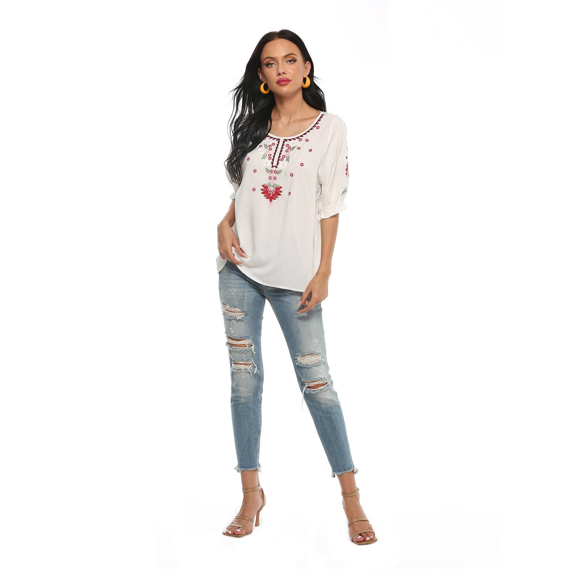 EMBROIDERED LOOSE CREW NECK PULLOVER TOP