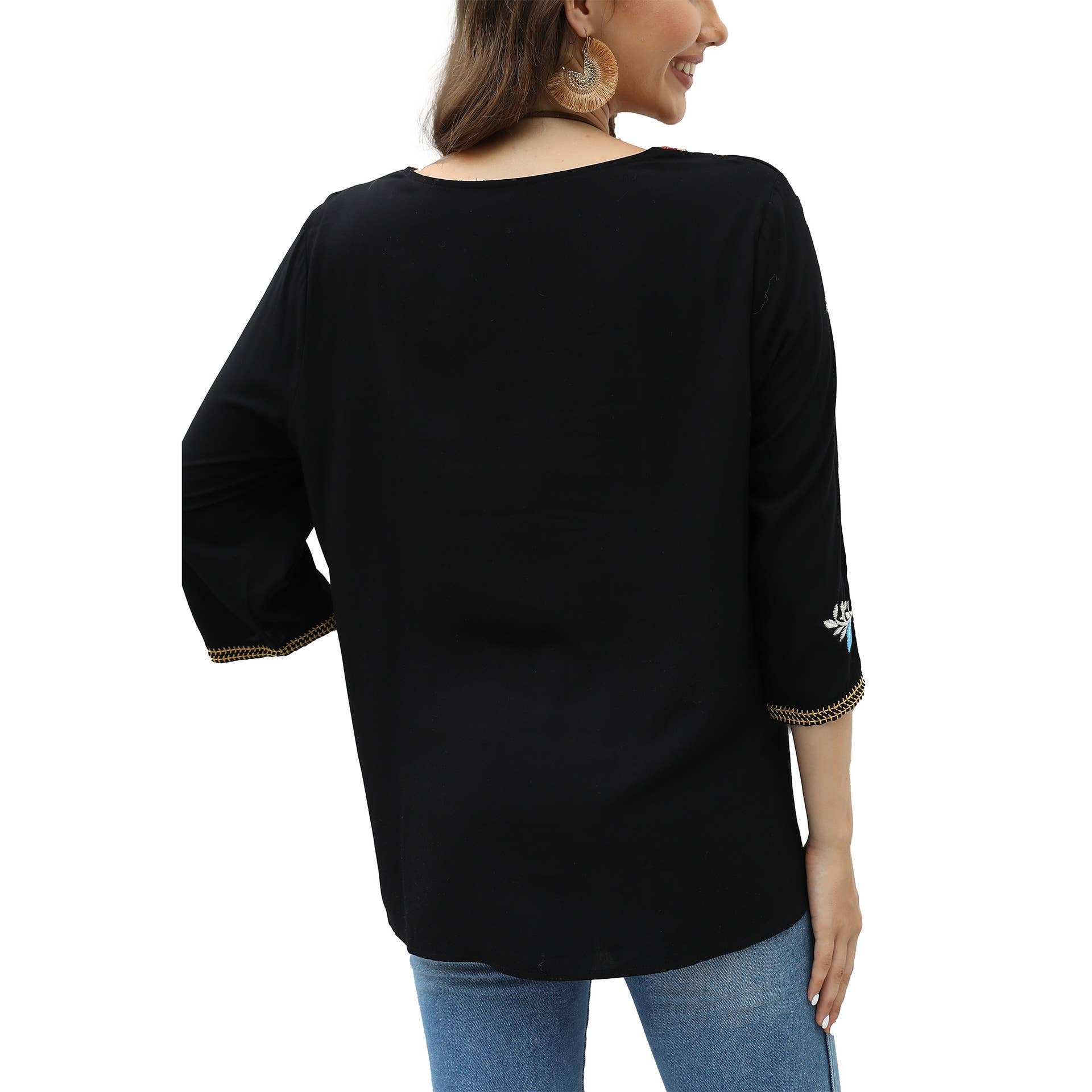 Embroidered seven-quarter sleeve shirt for women