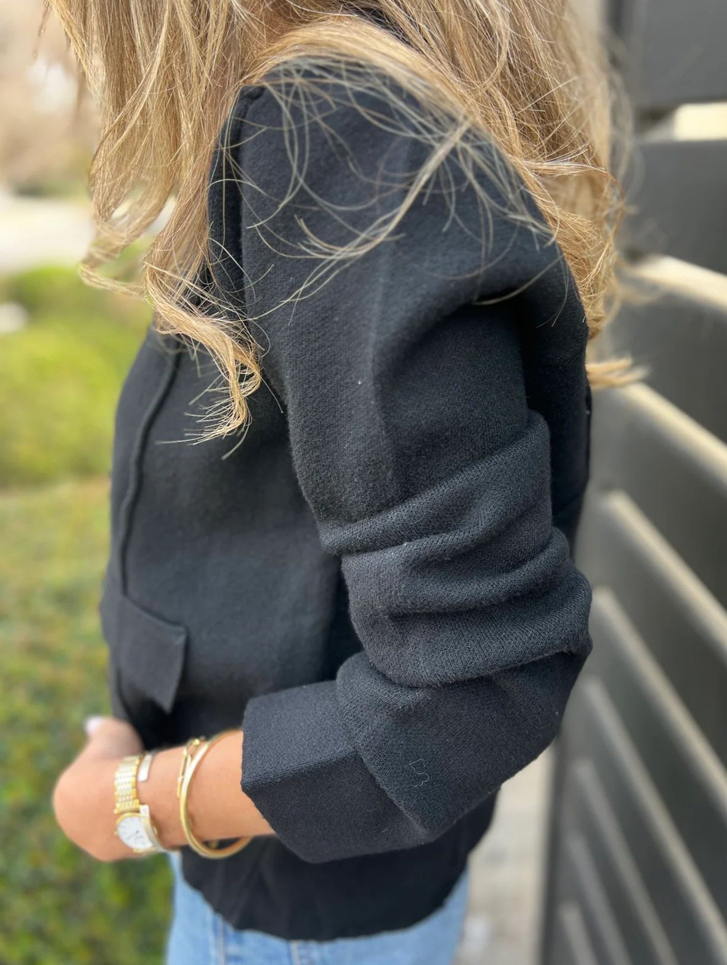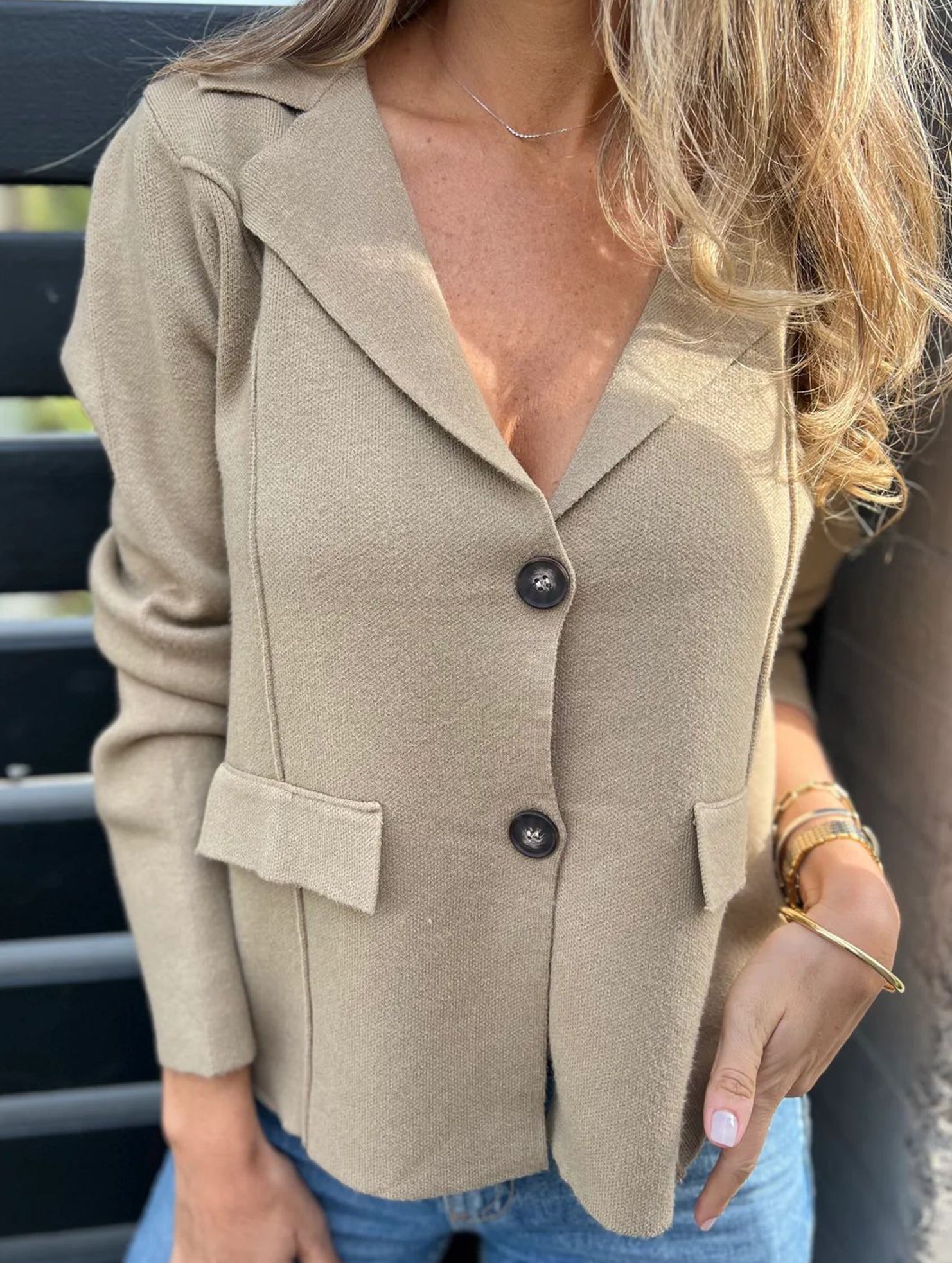 Fashion buttoned slim lapel knitted cardigan
