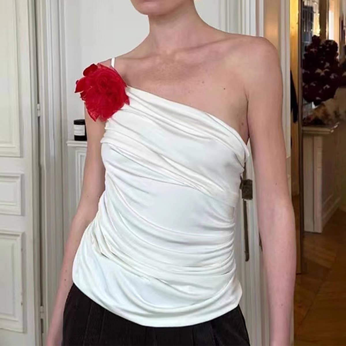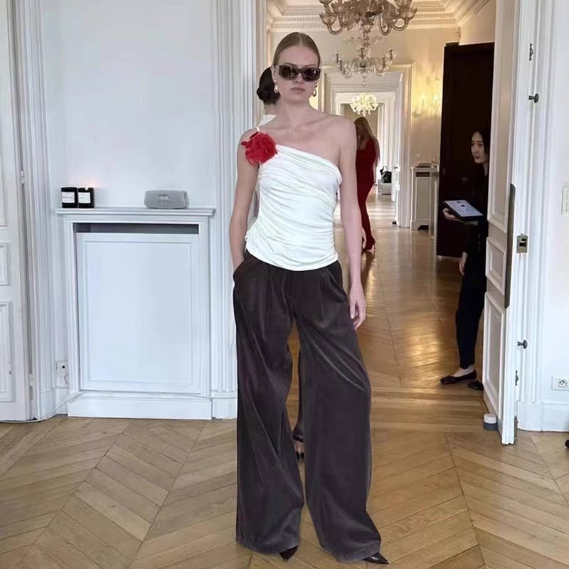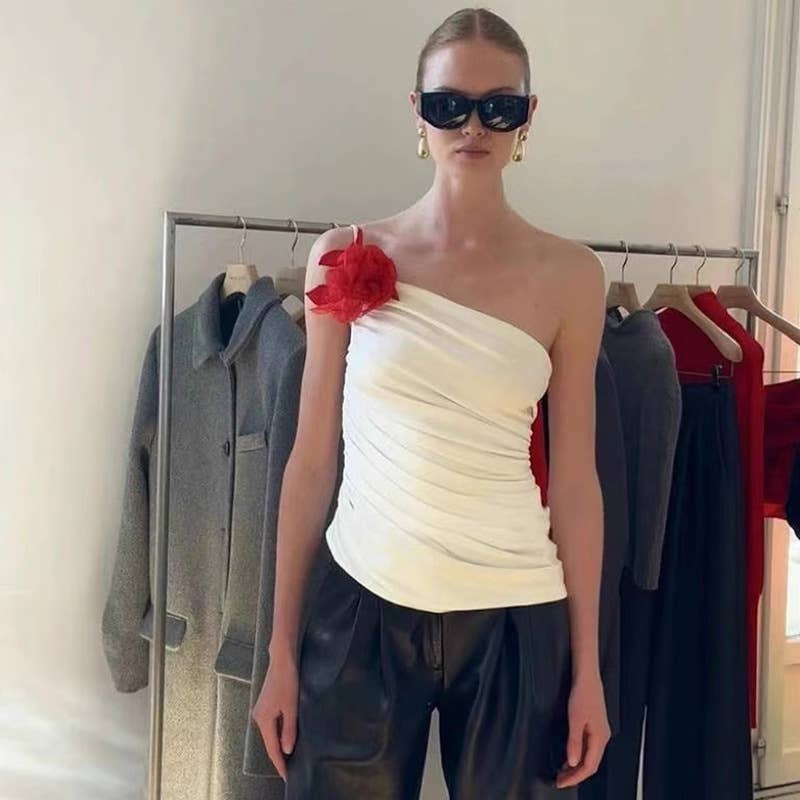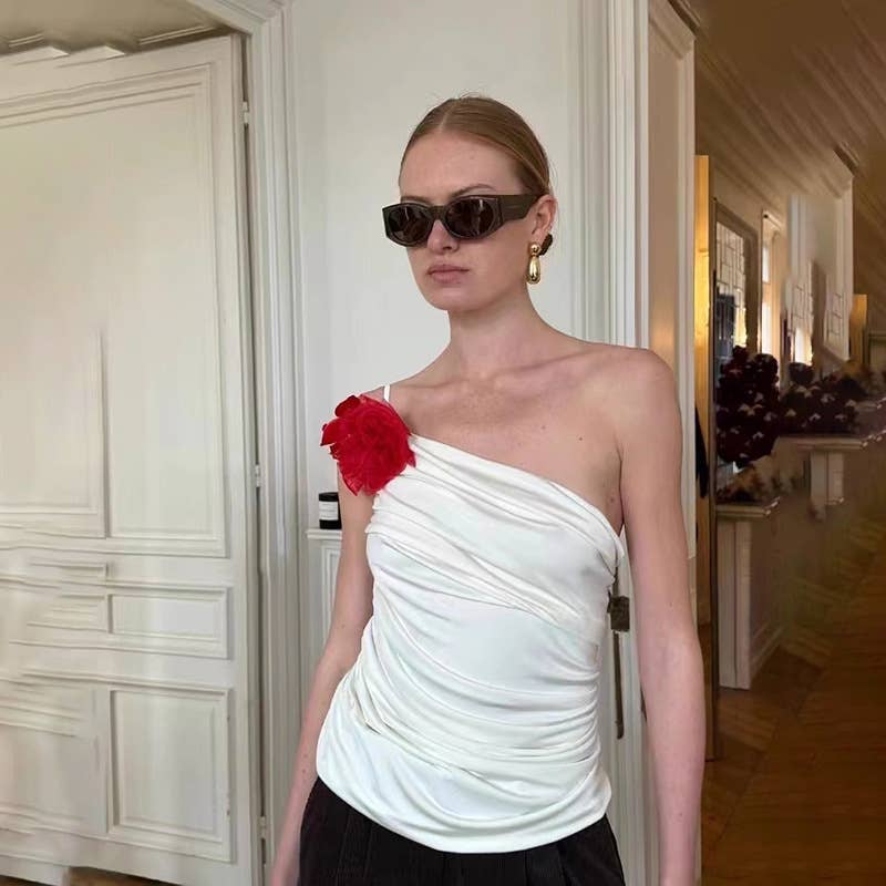 Fashion floral asymmetrical backless tank top