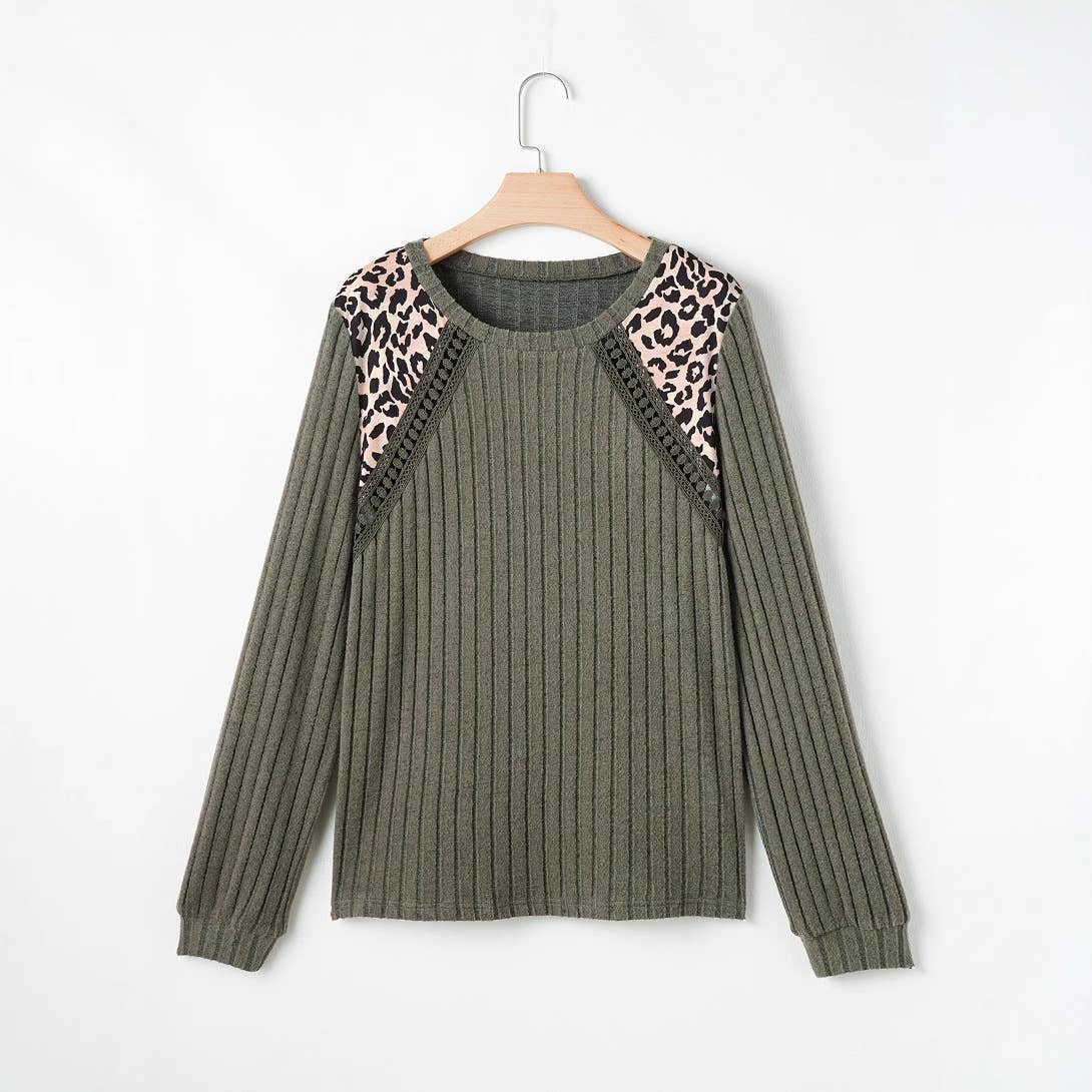FASHION LEOPARD PRINT PATCHWORK PULLOVER SWEATER