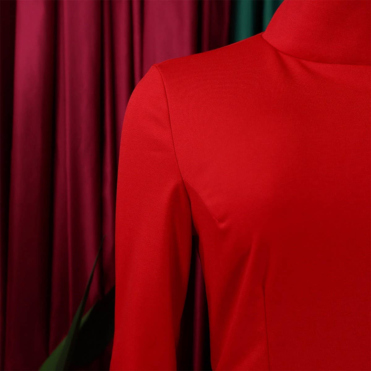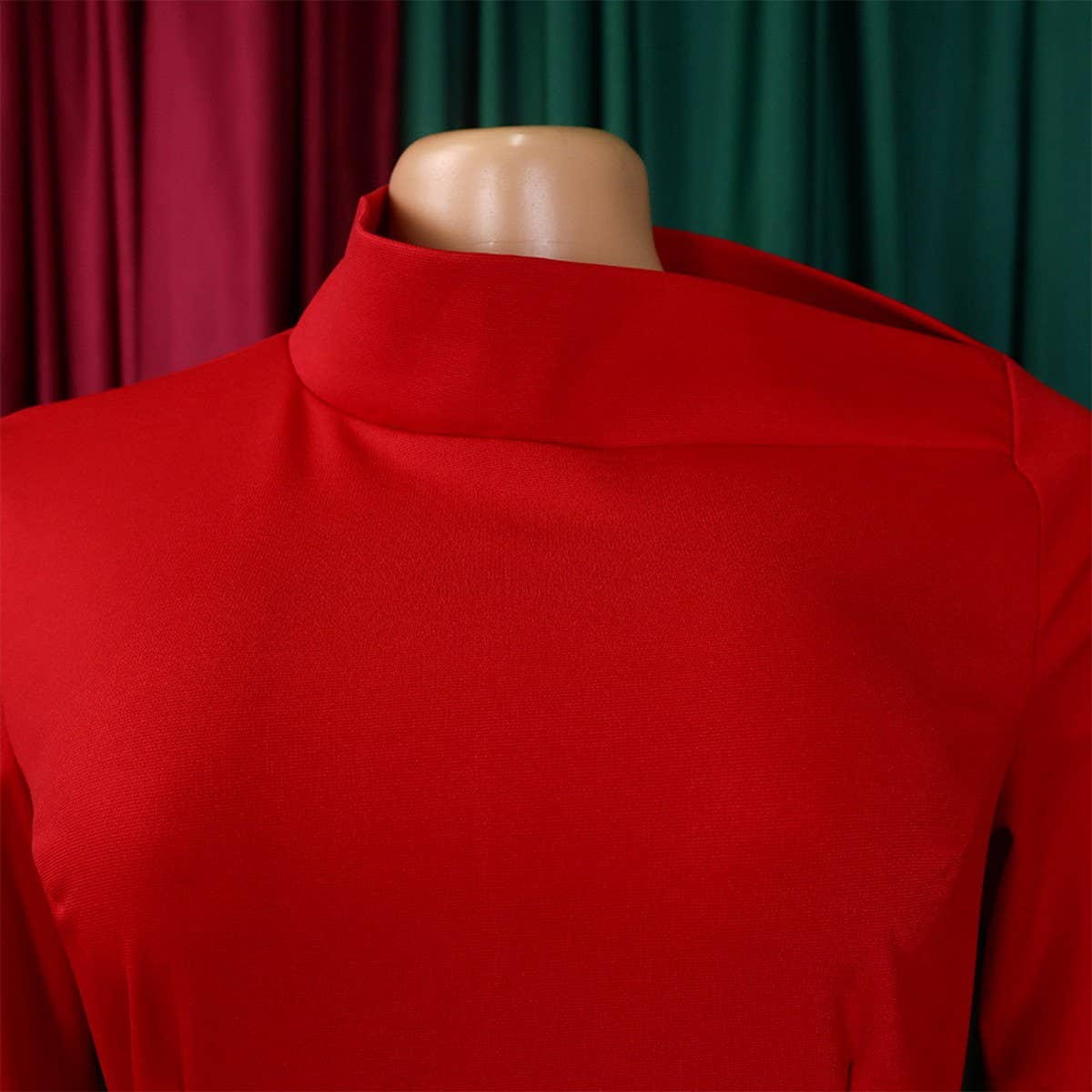 FASHION LONG SLEEVE OBLIQUE NECKSTRETCH KNIT DRESS_CWDMD3675