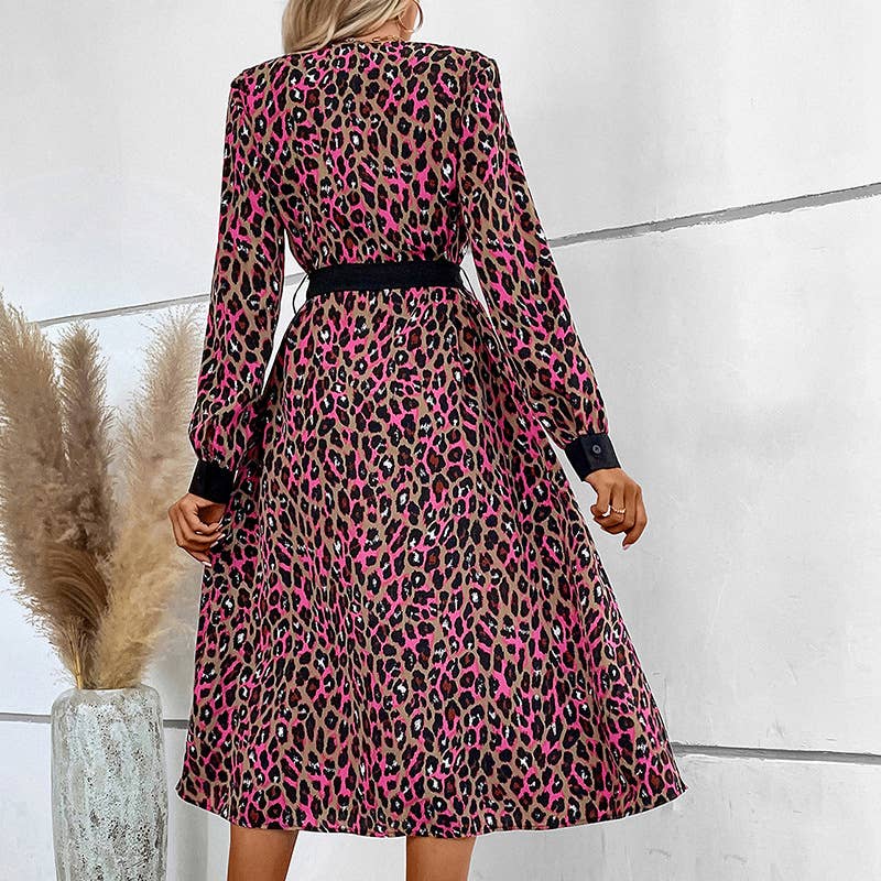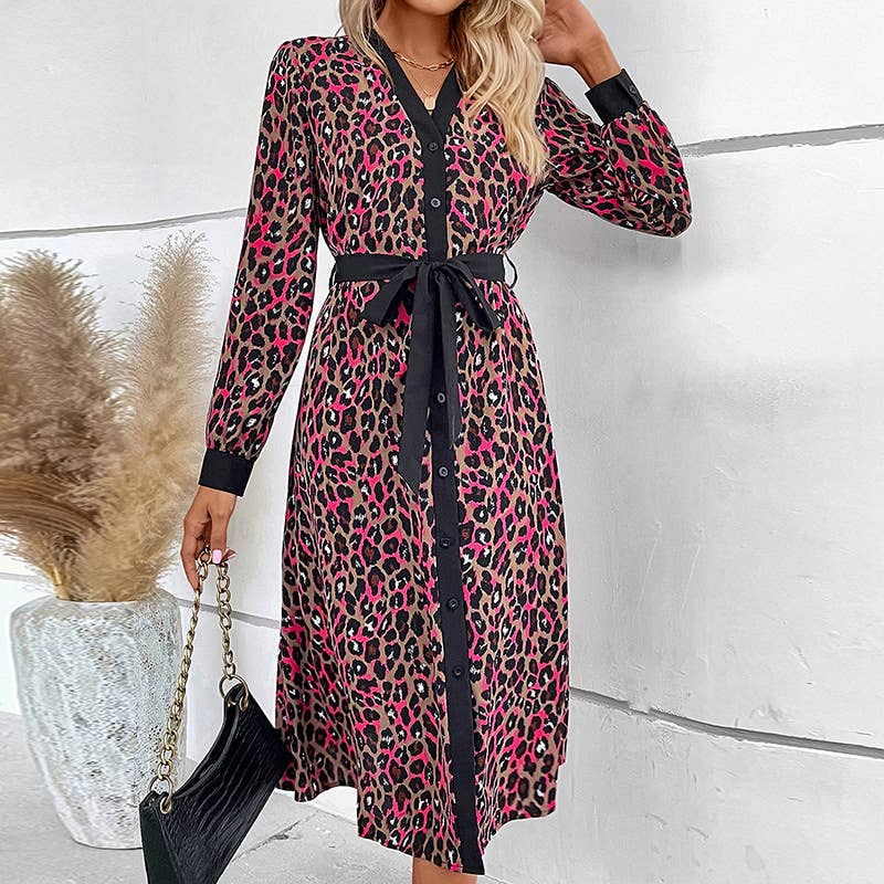 FASHION LOOSE LEOPARD PRINT SINGLE-BREASTED DRESS