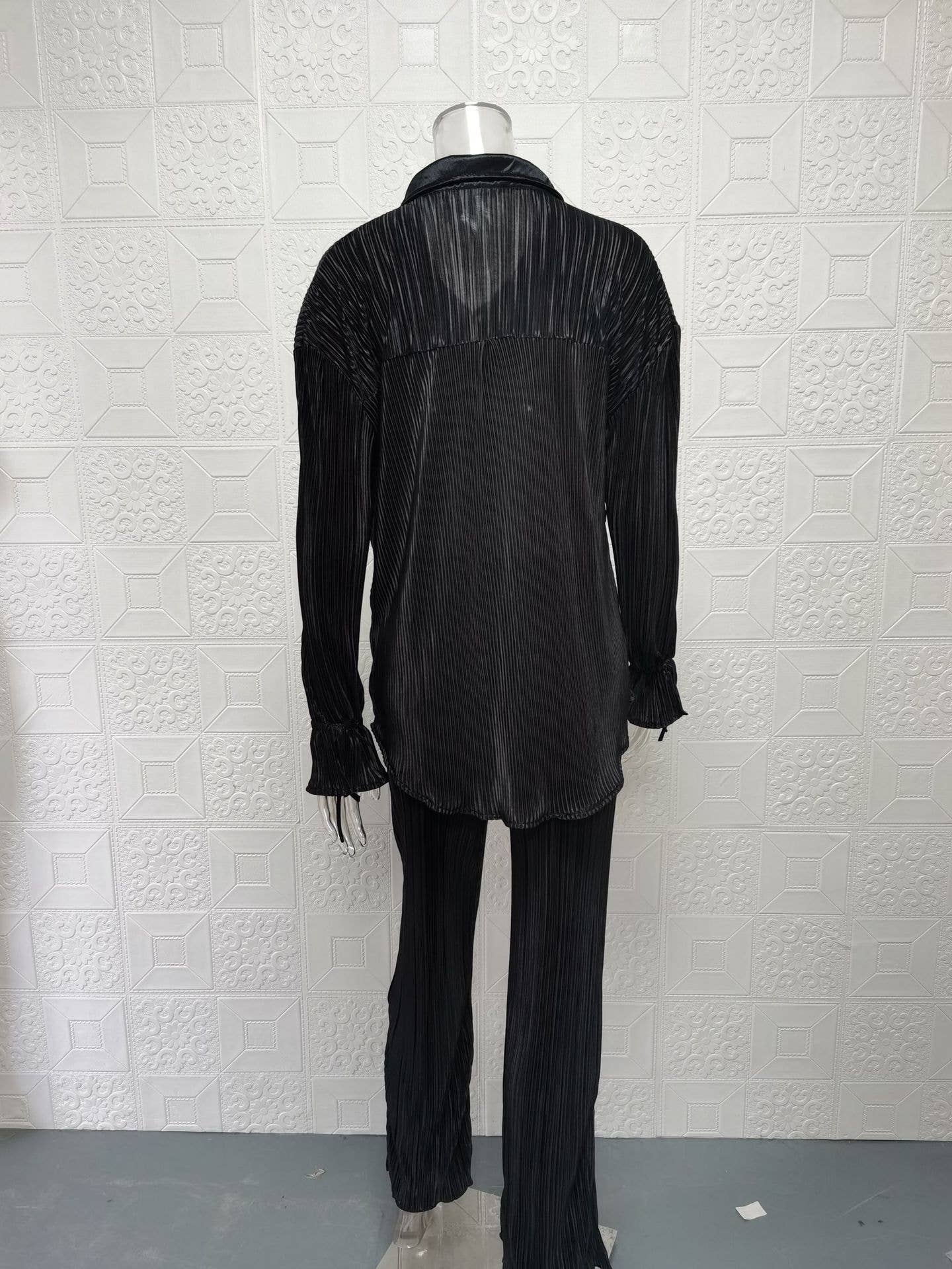 Fashion Pleated Shirt with Split Long Sleeve Set