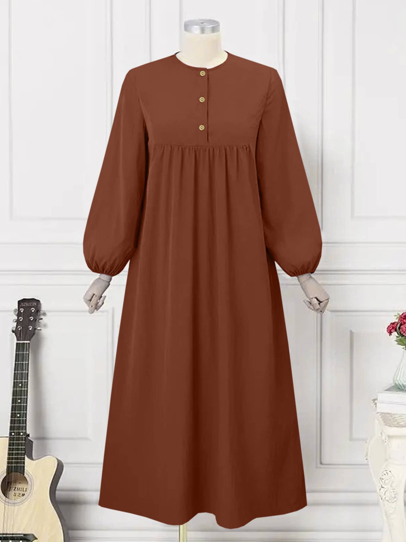 Fashion puffed-sleeve loose solid-color dress