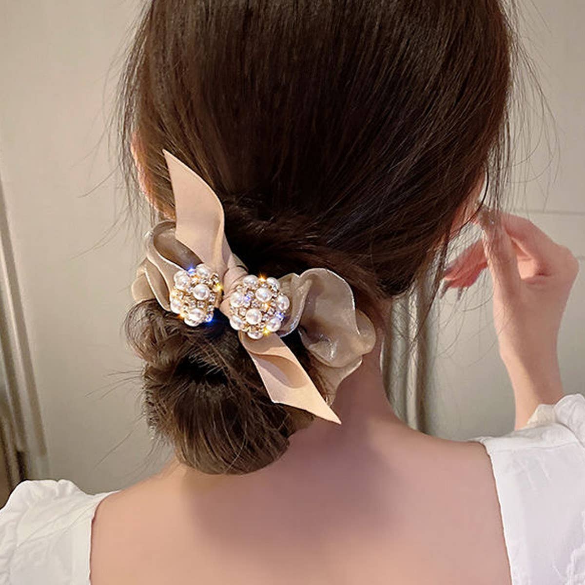 FASHION RHINESTONE PEARL BOW HAIR TIES