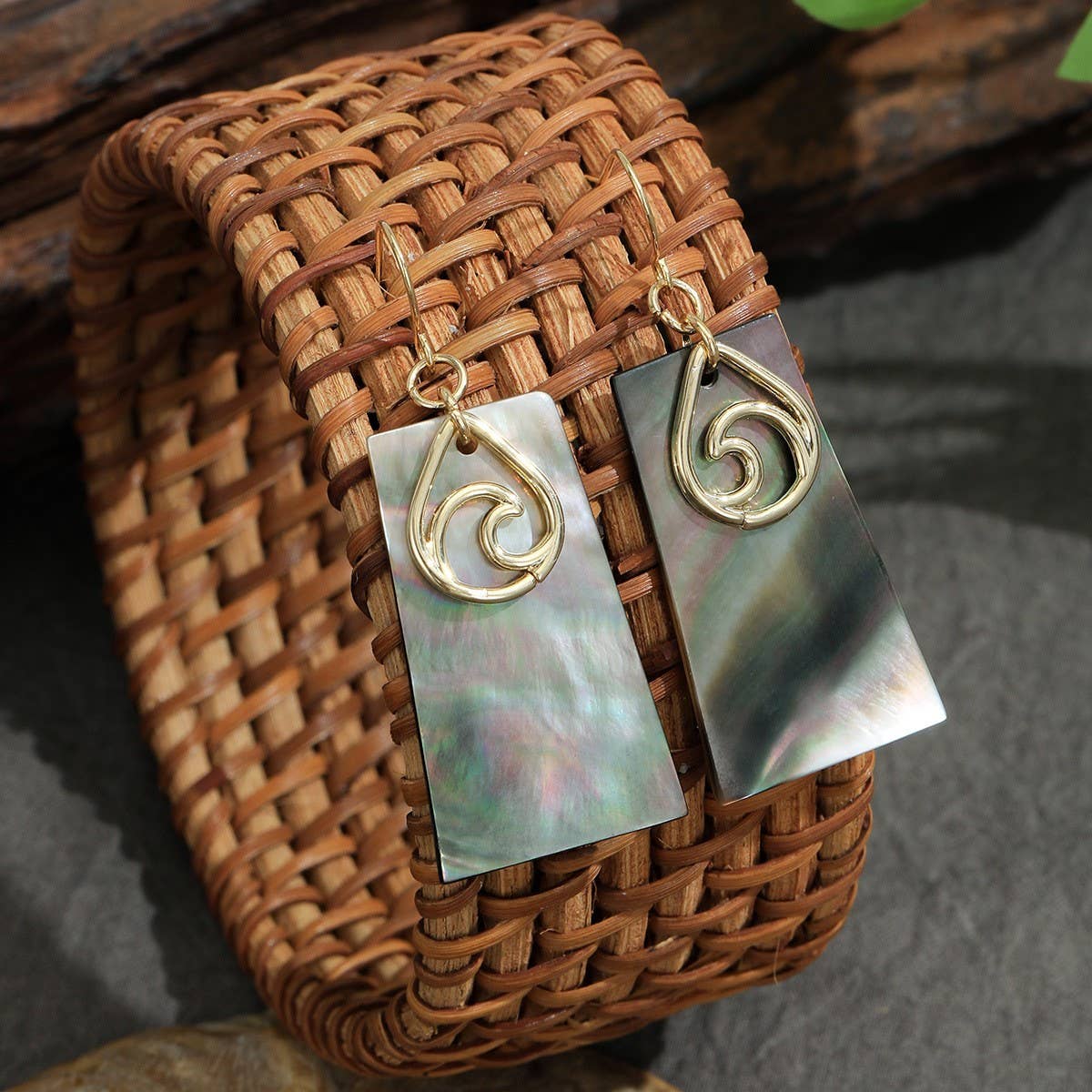 FASHIONABLE BLACK SHELL TRAPEZOID EARRINGS_CWMM4269