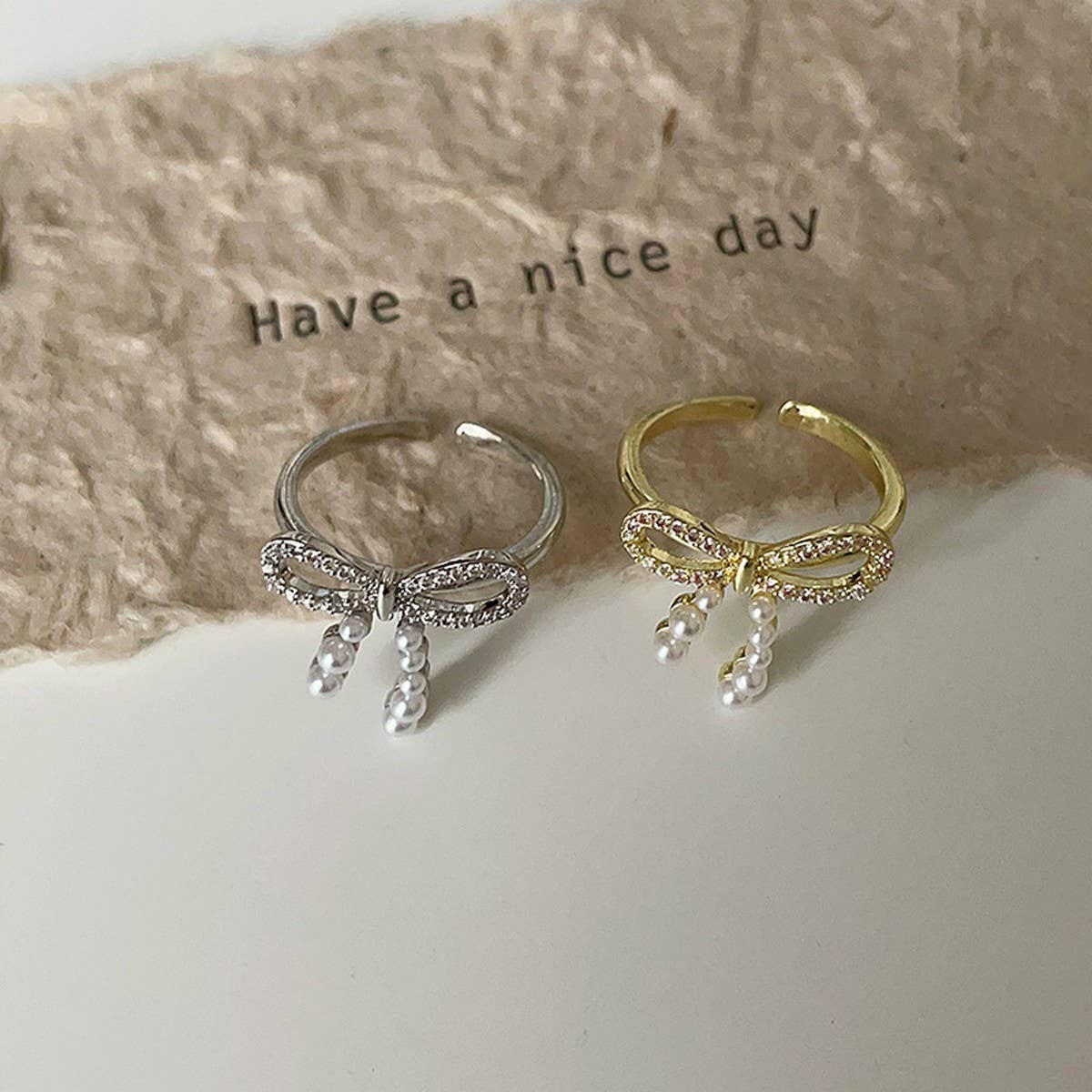 FASHIONABLE BOW SMALL PEARL RING FOR WOMEN