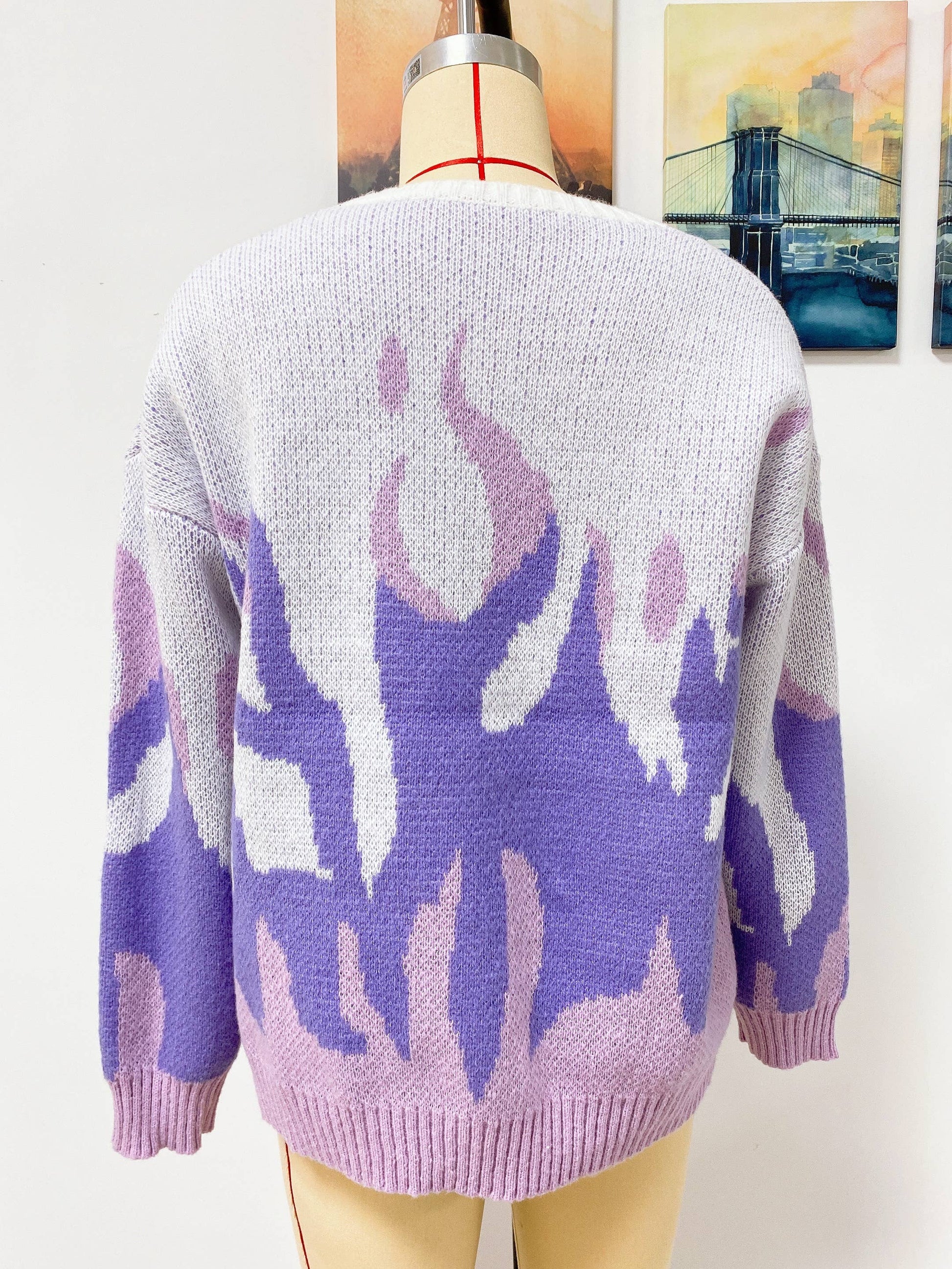 FLAME-JACQUARD CREW-NECK LONG-SLEEVED SWEATER