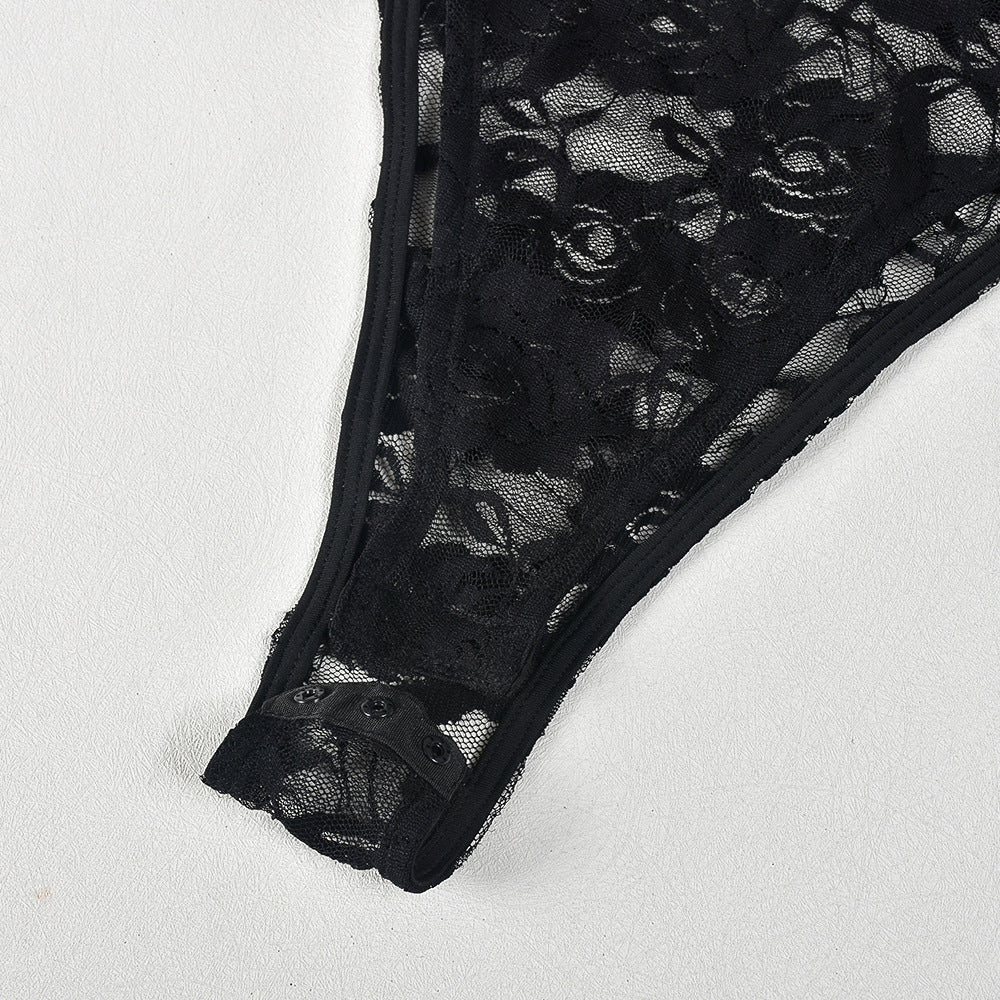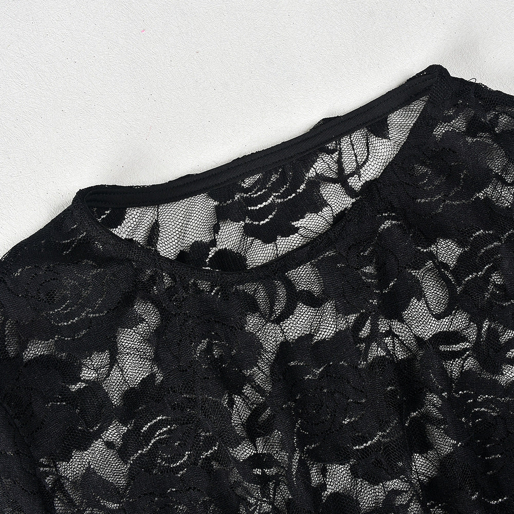 Flower Lace Long Sleeve Round Neck Bodysuit Skirt Pants Suit