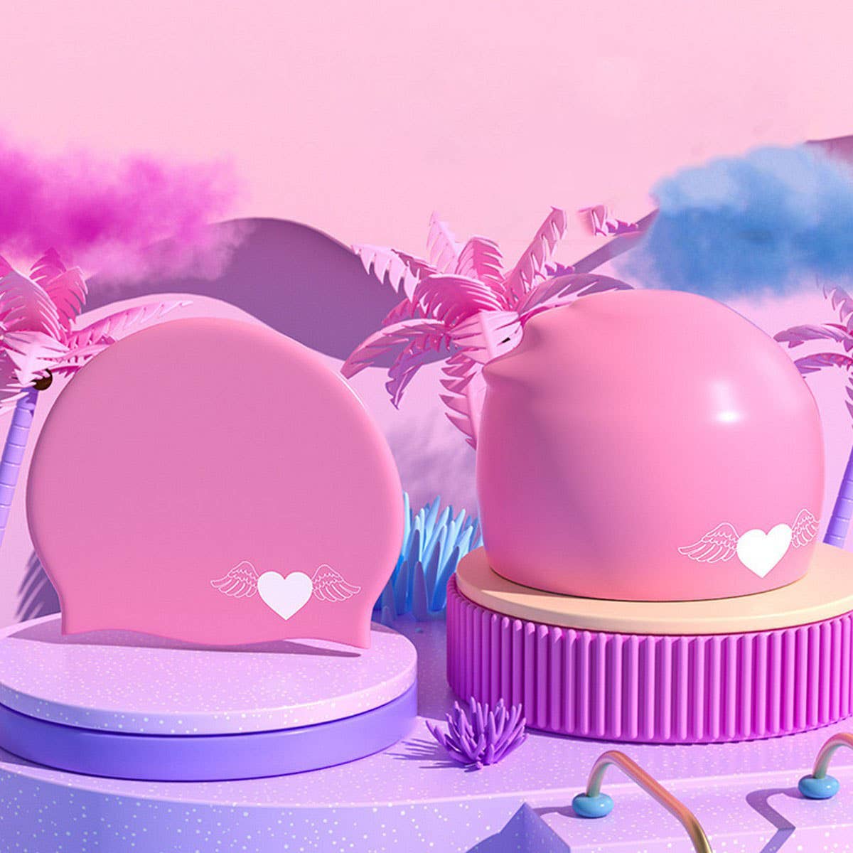 Girls Swim Cap Silicone Waterproof Cute Cartoon