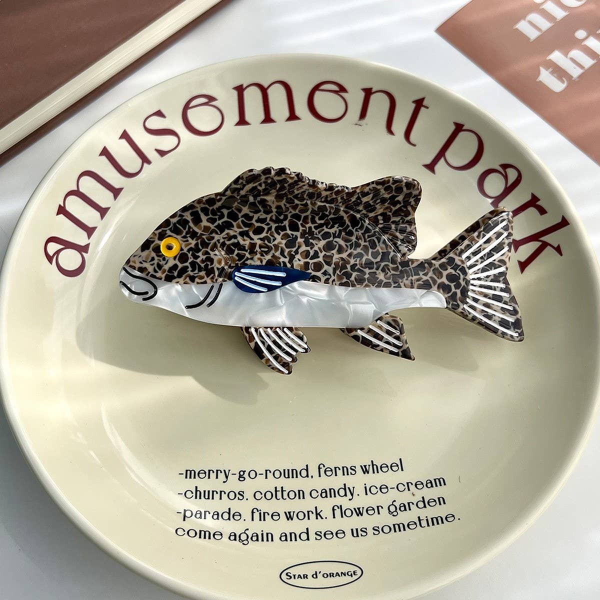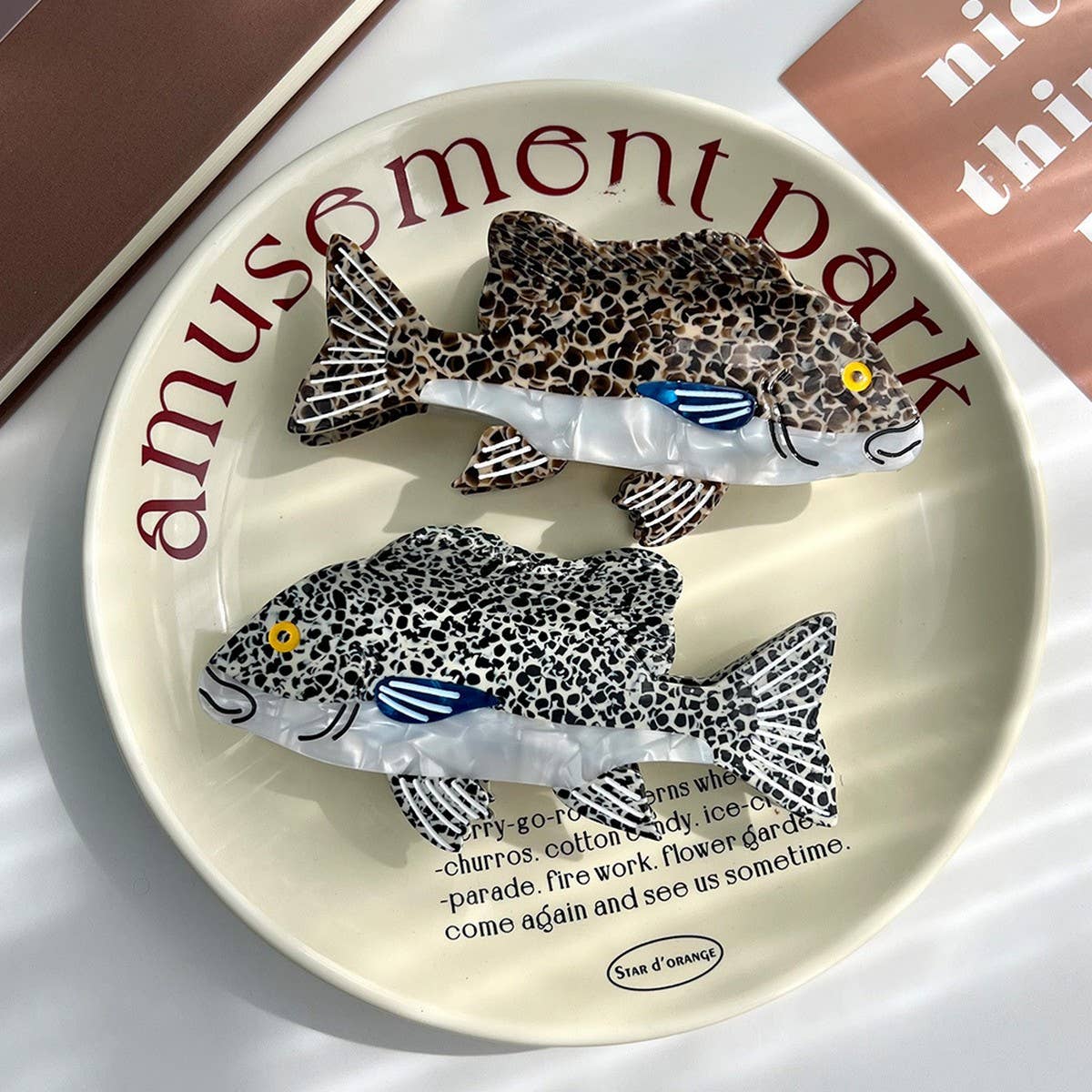 ? Size: 13 cm x 6.5 cm / 5.12 in x 2.56 in\n? Weight: Approx. 42.5 g\n? Material: Acetate\n? Design Elements: Grouper fish-inspired design ???\n? Style: Bold and artistic, perfect for ocean-themed looks or statement styling\n\n#acetatehairclip #fishclip #oceaninspired #boldaccessory #statementhairclip #13cmclip\nTypes of products that will be on the shelves during this period:\nHair claw clip set, large hair claw clip, flower hair claw, boho claw clip, pearl hair claw, modern hair claw, rhinestone claw clip, colorful hair claw, hair clips claw, hair clips for women, wholesale hair clips, bulk hair clips, hair clip display, clips for hats, clips for kids, mini hair clips, trendy hair clips, fashion hair claws, strong hold hair clip, acrylic claw clip.
