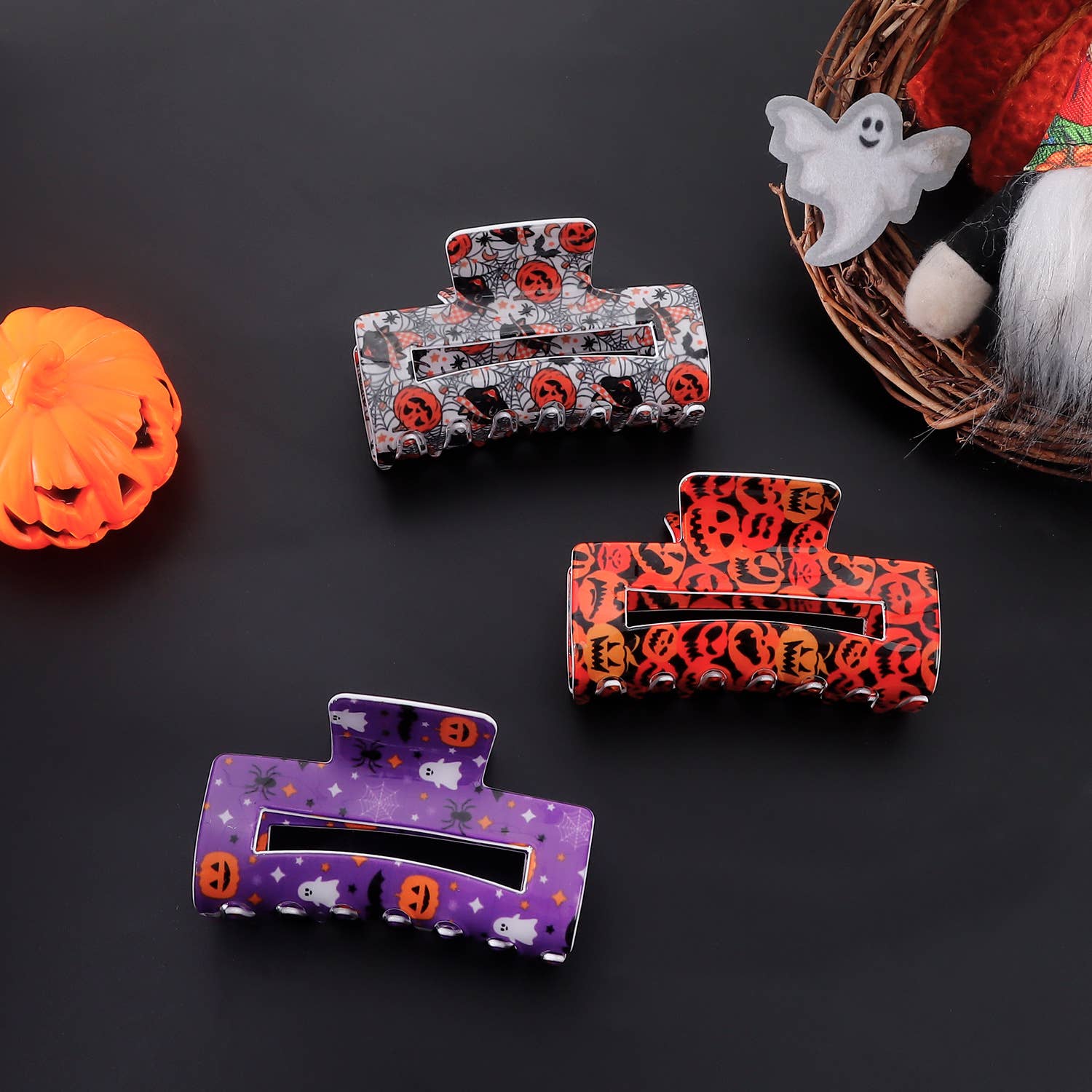 HALLOWEEN PUMPKIN GHOST BAT RECTANGULAR HAIRPIN