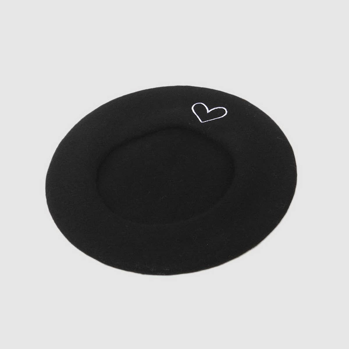 HEART EMBROIDERED FASHION COMMUTER BERET\nSIZE:OS(1)\n WOOL\n22.05"-22.83"(56CM-58CM)\nMADE IN CHINA \nBERET HATS FOR WOMEN,BERET HAT TYPE,BERET HATS,BERET HATS MEN,KNITTED BERET HAT,FUR BERET HAT,GREEN BERET HAT,KNIT BERET HATS,LEATHER BERET HAT