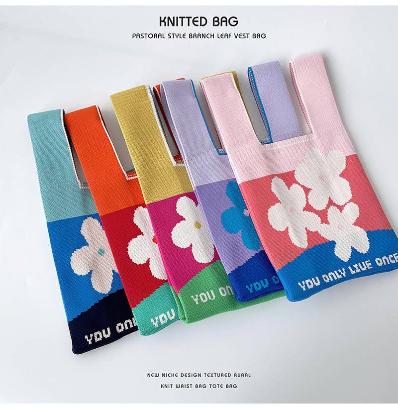 Heart-shaped color-blocked knitted handbag