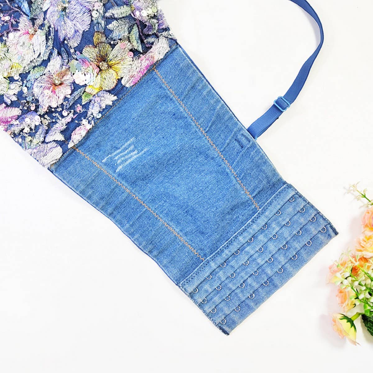 HIGH-END DENIM FLOWER PATCHWORK HERRINGBONE BRA