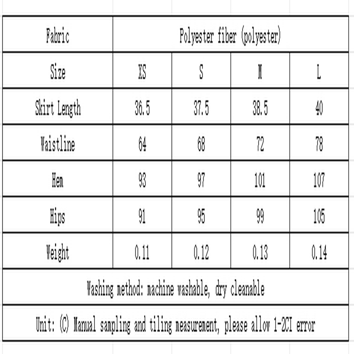 '- Material: Polyester (polyester fiber)\n- Size: XS, S, M, L\n- Weight: 130g\n? This size is Asian size, 1-2 sizes smaller than US size. Please check the size chart carefully.
