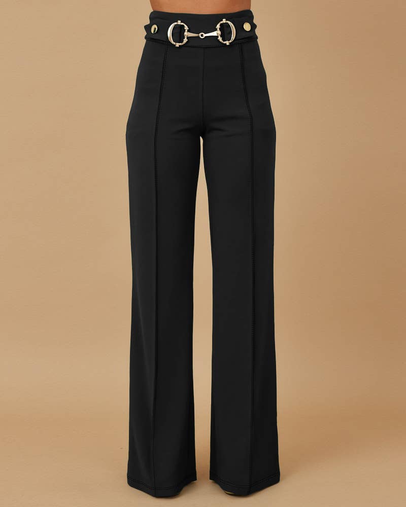 High-waisted metal belts straight-leg pants