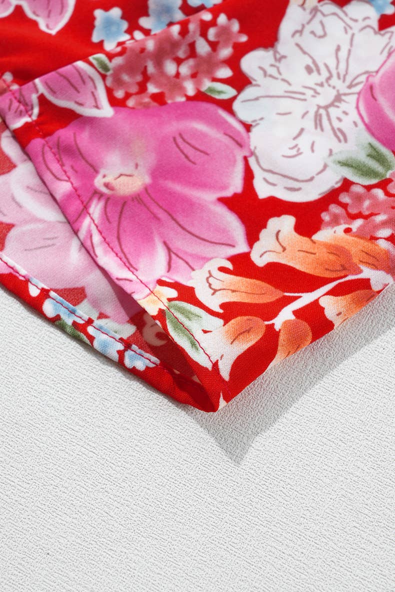 HOLIDAY HIGH-WAISTED FLORAL PRINT V-NECK DRESS
