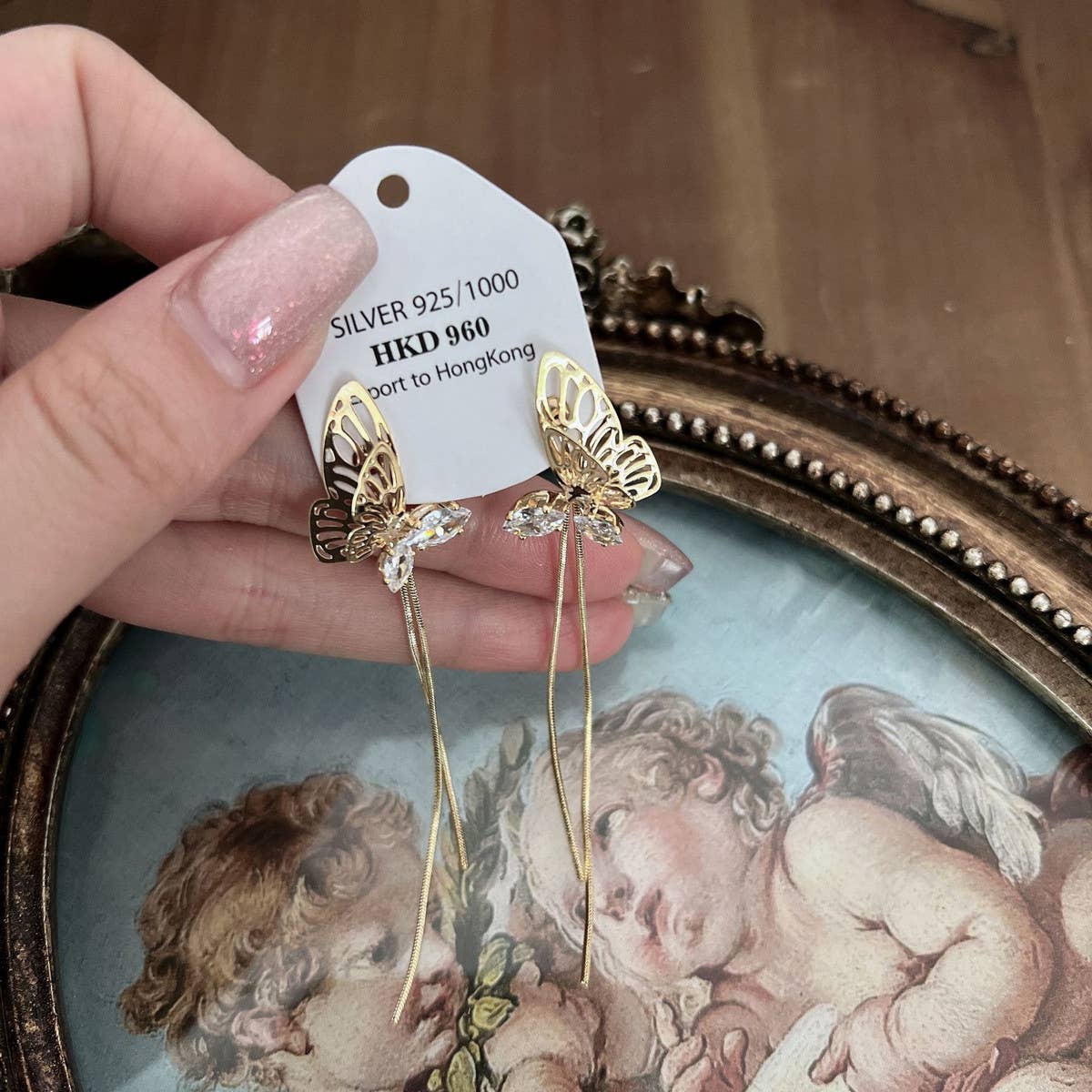 HOLLOW BUTTERFLY TASSEL EARRINGS\nSIZE:OS(2)\nMATERIAL: COPPER + ZIRCON\nMADE IN CHINA \n\nEARRINGS FOR WOMEN BULK,EARRINGS FOR WOMEN GOLD,EARRINGS FOR WOMEN BOHO,EARRINGS FOR WOMEN PEARL,EARRINGS FOR WOMEN STUDS,EARRINGS FOR WOMEN BEADED,EARRINGS FOR WOMEN WITH DISPLAY,EARRINGS FOR WOMEN STERLING SILVER,EARRINGS FOR WOMEN HOOPS,SPECIAL SHAPE, PENDANT, LETTERS, JEWELRY, SQUARE, ROUND, BEACH, BEACH SHELL NECKLACE, CUTE, GORGEOUS, FASHIONABLE, RETRO, 18K GOLD-PLATED NECKLACE, DIAMOND, BOHEMIAN, SMOOTHEST, POPULAR, WHOLESALE, 2024 NEW STYLE, BEST SELLING PENDANT NECKLACE BEST,QUADRANGLE, EARRINGS, CHAIN, HIGH-END, OPAL, CRYSTAL, FLOWERS, BOW, IRREGULAR, SIMPLE, HOLLOW, LIGHT LUXURY, GREEN, RING CLIP