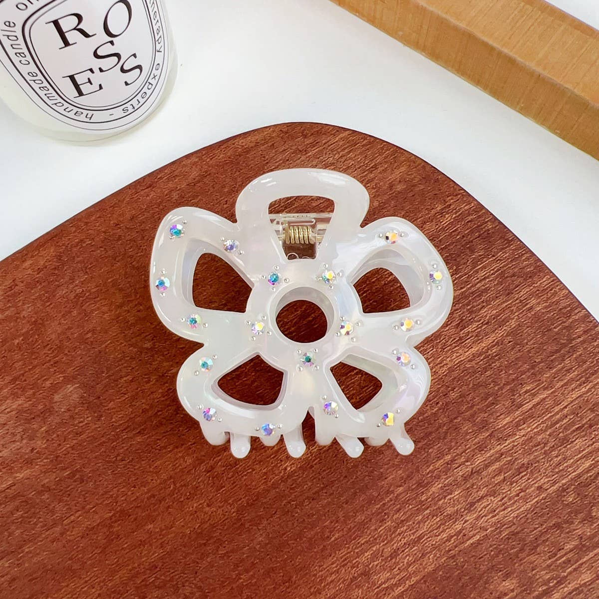 ? Size: 5.3 cm x 4.5 cm / 2.09 in x 1.77 in\n? Weight: Approx. 12 g\n? Material: Acetate\n? Design Elements: Hollow floral design with rhinestone accents ?????\n? Style: Elegant and refined, perfect for adding a delicate sparkle and floral charm to your hairstyle\n\n#acetatehairclip #floralclip #hollowdesign #rhinestoneclip #eleganthairaccessory #5_3cmclip\nTypes of products that will be on the shelves during this period:\nHair claw clip set, large hair claw clip, flower hair claw, boho claw clip, pearl hair claw, modern hair claw, rhinestone claw clip, colorful hair claw, hair clips claw, hair clips for women, wholesale hair clips, bulk hair clips, hair clip display, clips for hats, clips for kids, mini hair clips, trendy hair clips, fashion hair claws, strong hold hair clip, acrylic claw clip.