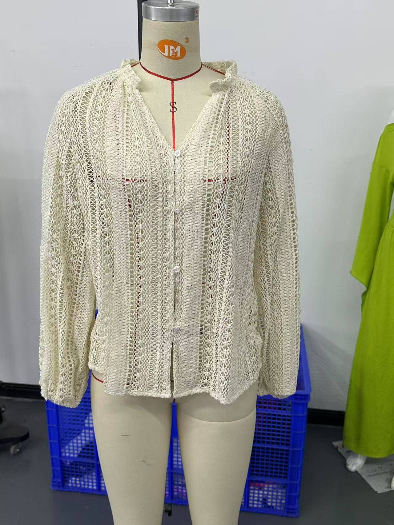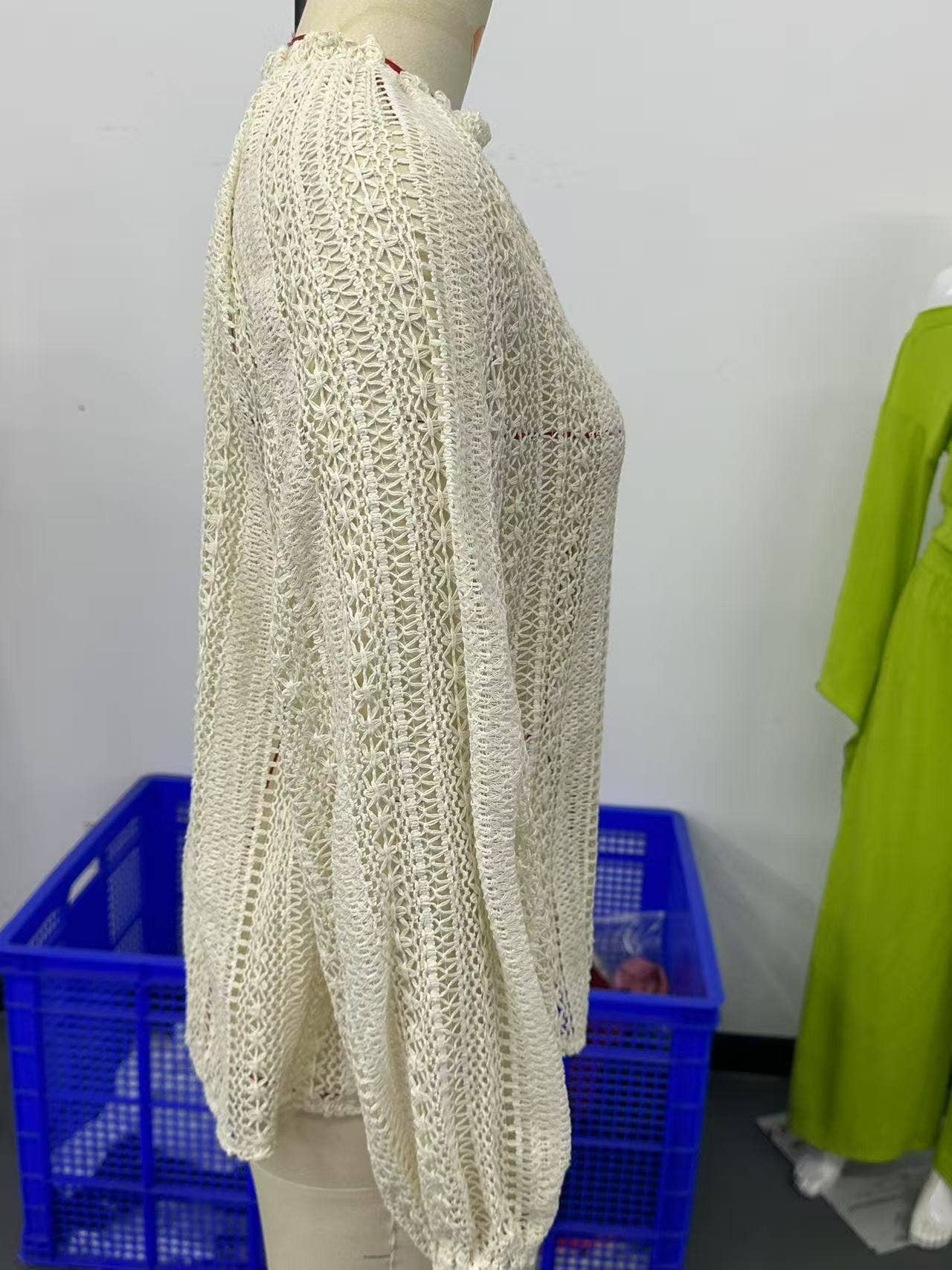 Hollowed-out lace V-neck single-breasted shirt