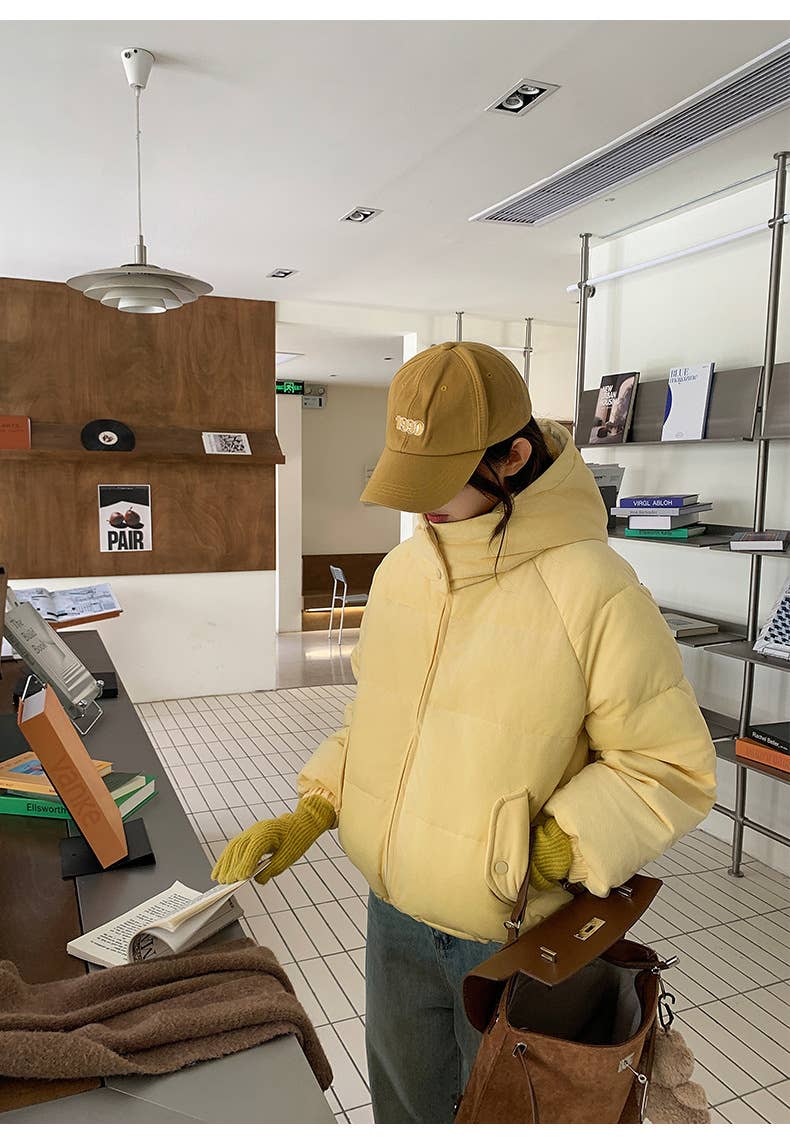 Hooded feels corduroy texture cotton-padded coat