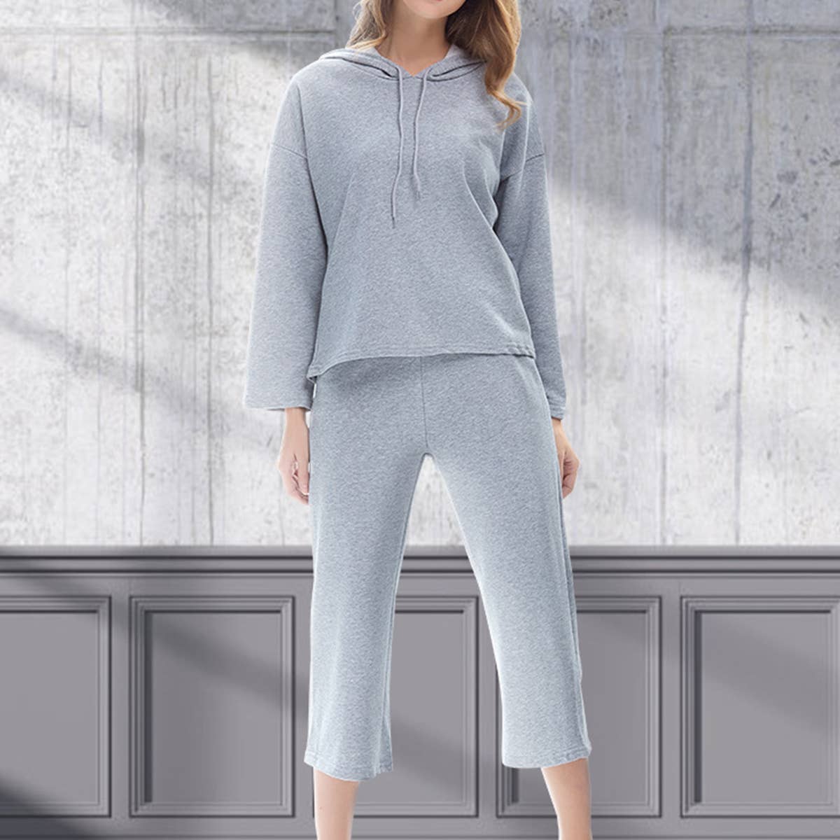 Hooded laceup hoodie wide-leg nine-point pantsuit