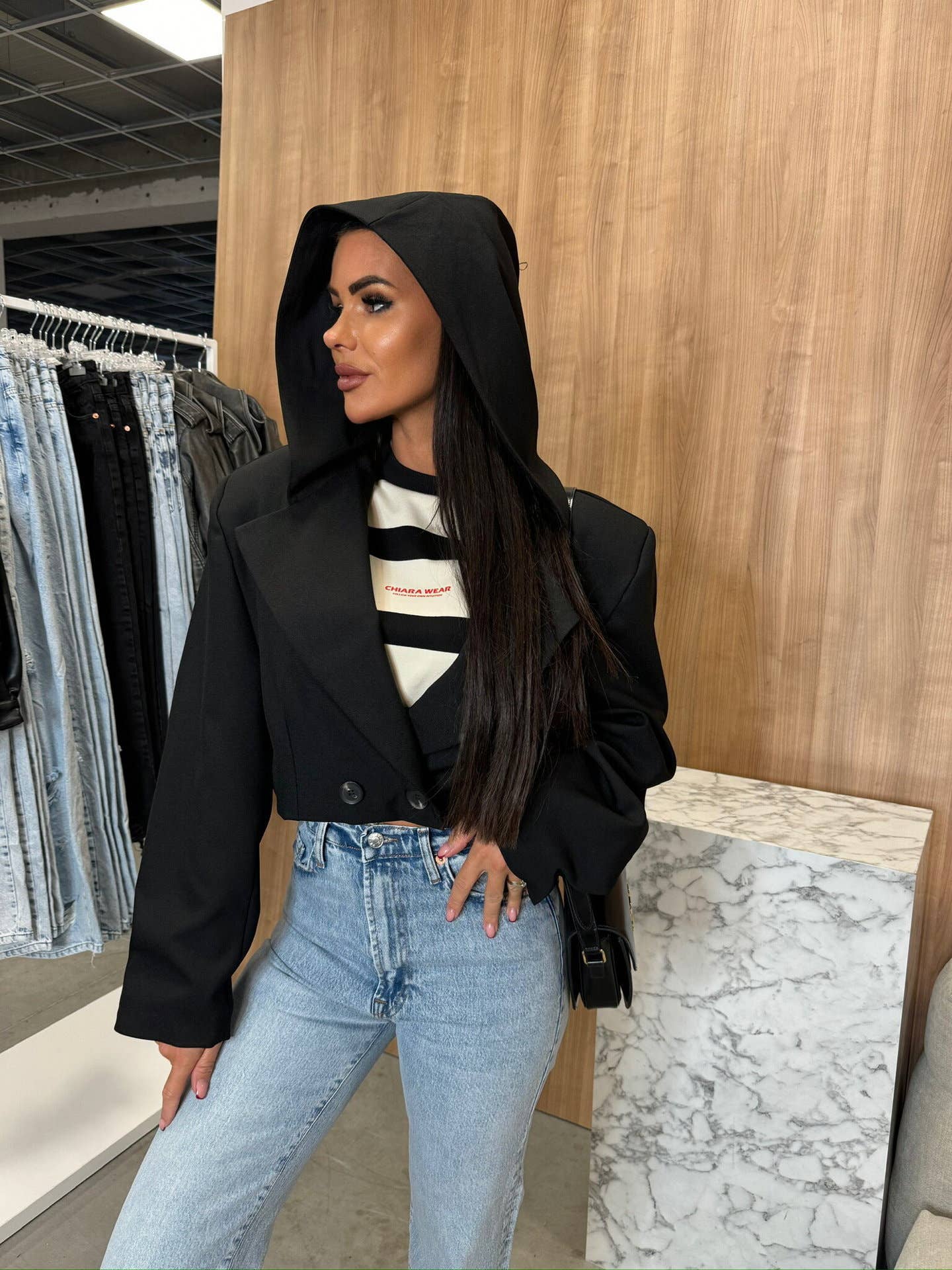 HOODED LONG SLEEVE SMALL SUIT SOLID COLOR COAT