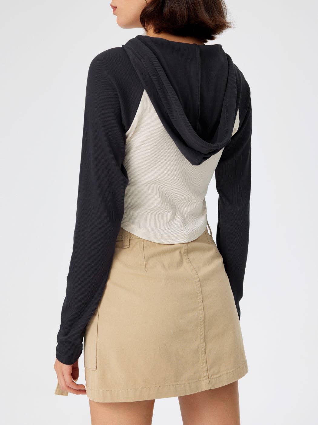 Hooded patchwork color irregular slim-fit T-shirt