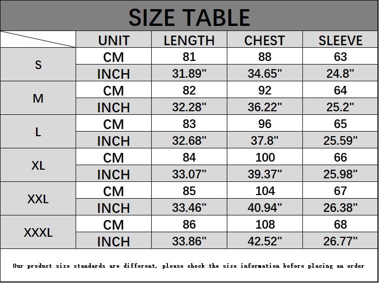 SIZES : S,M,L,XL,XXL,XXXL