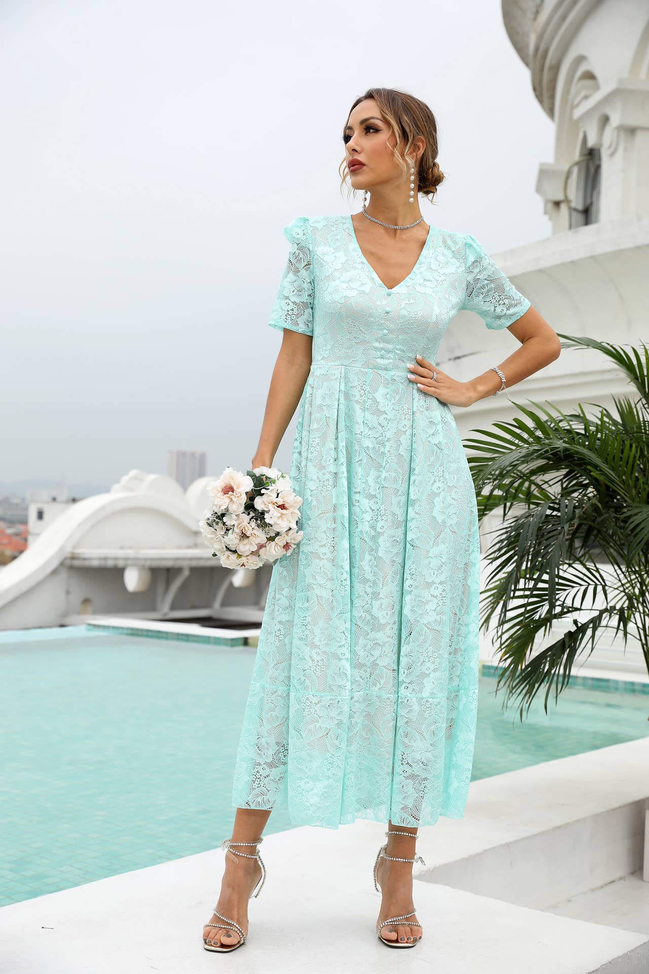 LACE COMMUTER HIGH-WAISTED V-NECK DRESS