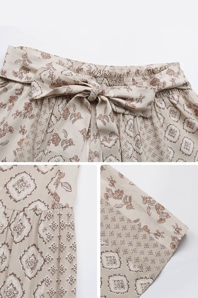LACE-UP PATCHWORK WIDE-LEG PANTS