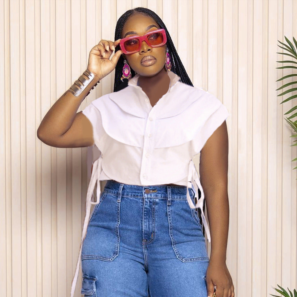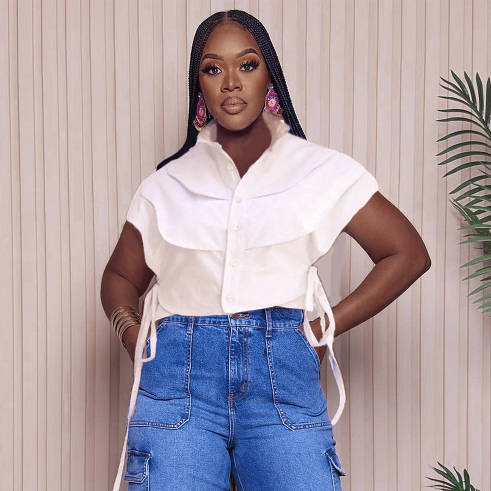 Lace Up Sleeveless Layered Tied Casual Shirt