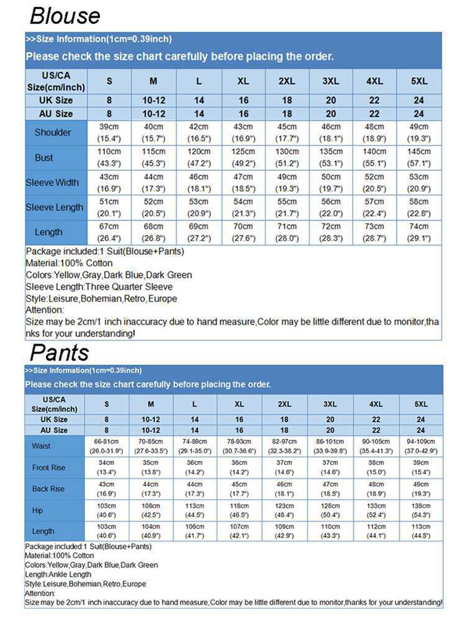SIZES : S,M,L,XL,XXL,XXXL