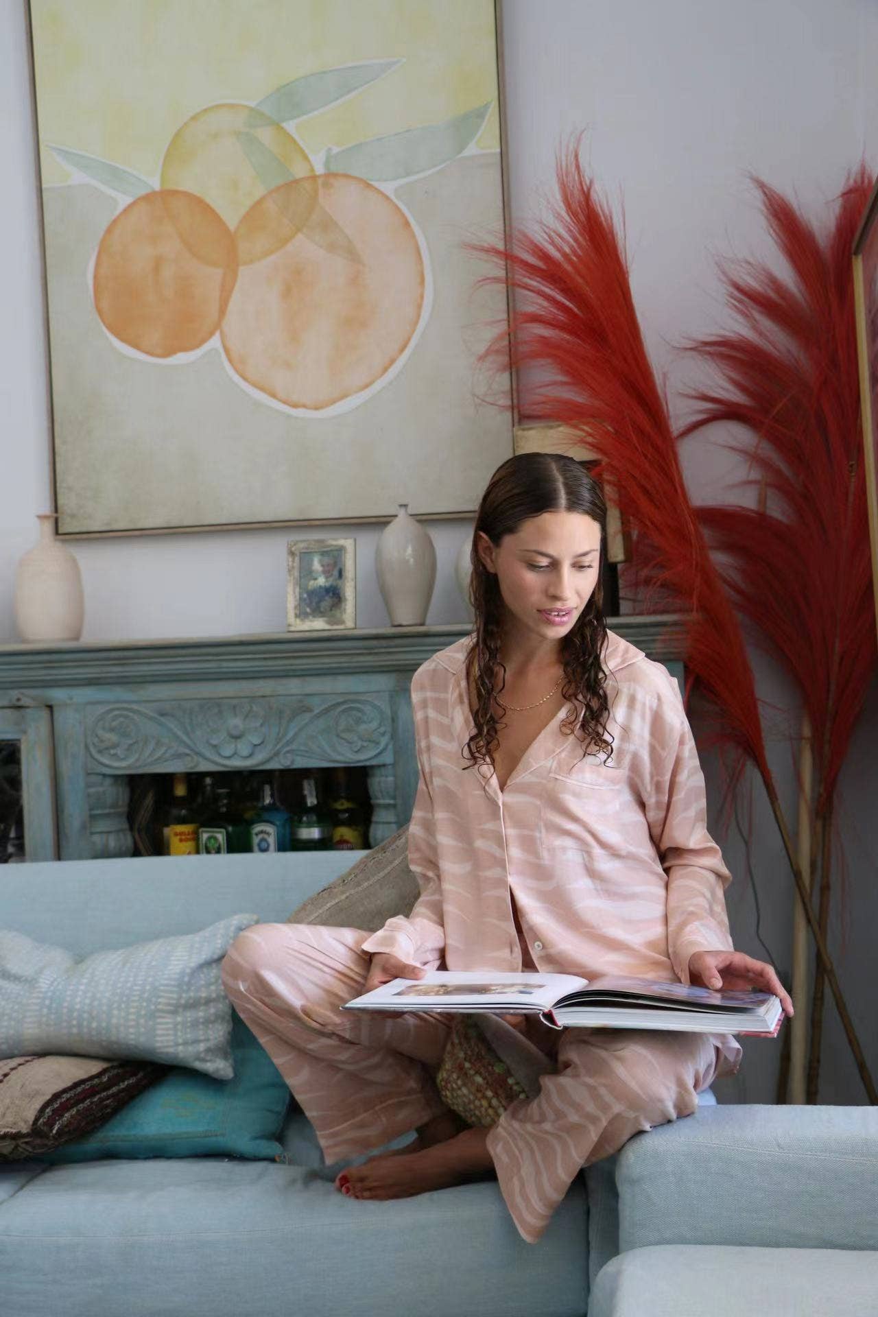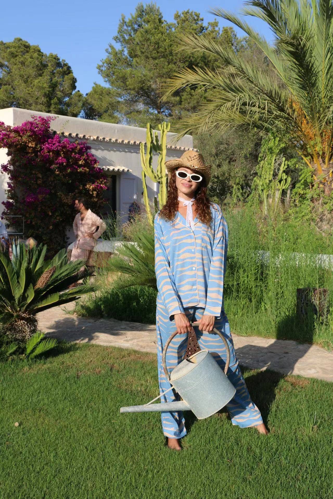 Lapel single-breasted tropical print home set