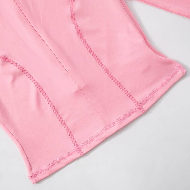 Lapel zipper pullover line waist yoga T-shirt