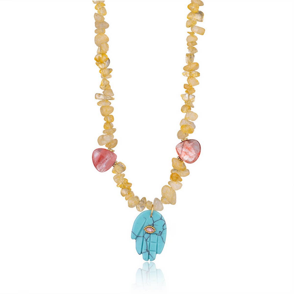 Lapis Tiger Eye Fatima Hand Beaded Necklace_CWMM7533