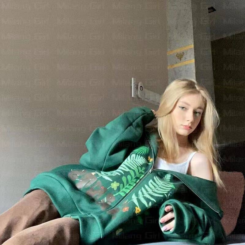 LEAF GRASS BUTTERFLY MUSHROOM PRINTED HOODIE