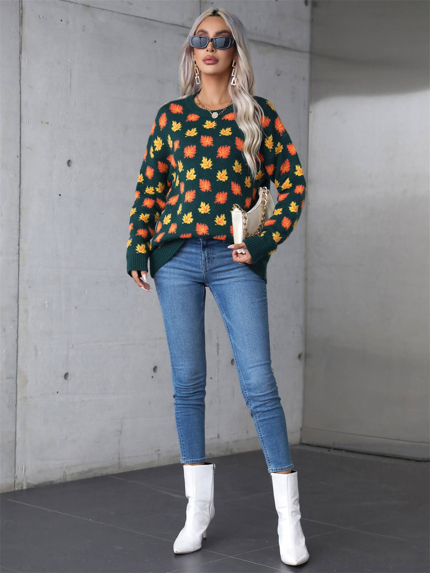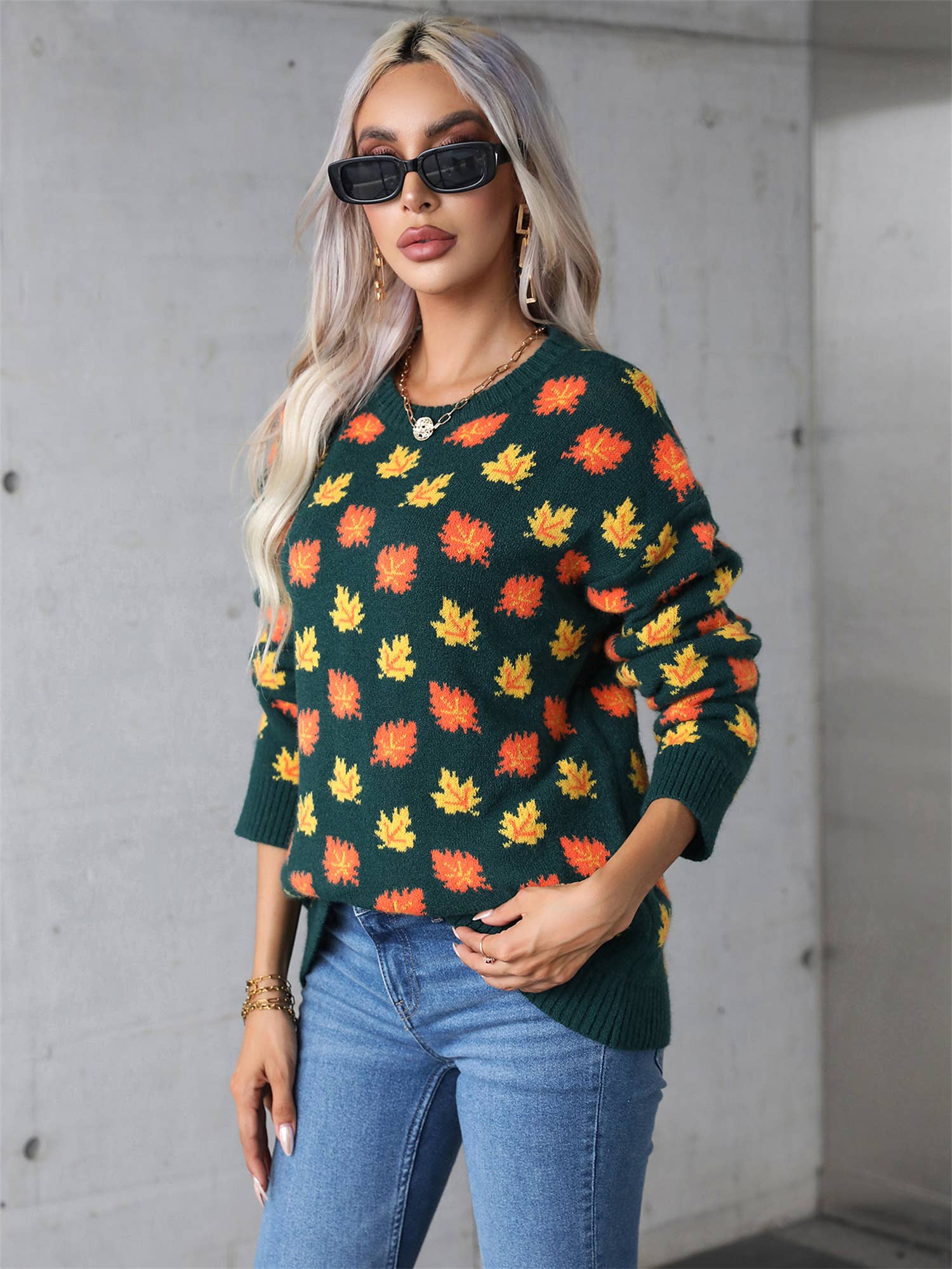 LEAVES CHRISTMAS CREWNECK SWEATER KNIT