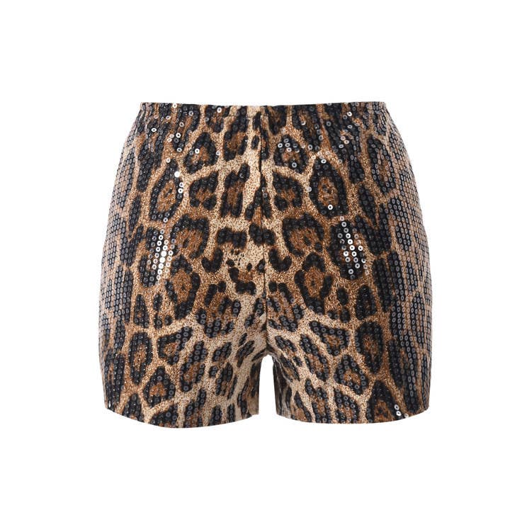 Leopard-print elastic tight-waisted hot pants