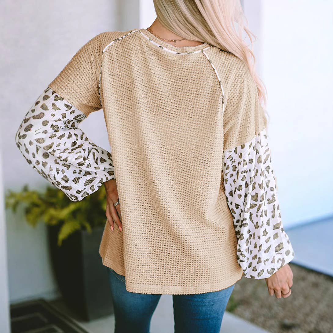 LEOPARD PRINT PATCHWORK CASUAL WAFFLE JUMPER