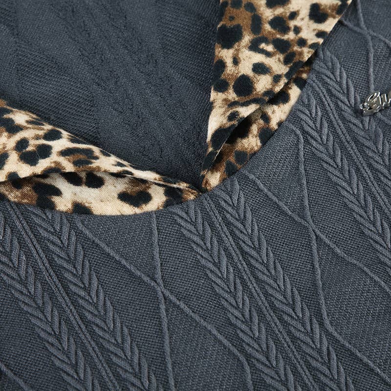 LEOPARD PRINT PATCHWORK KNIT LONG SLEEVE T-SHIRT