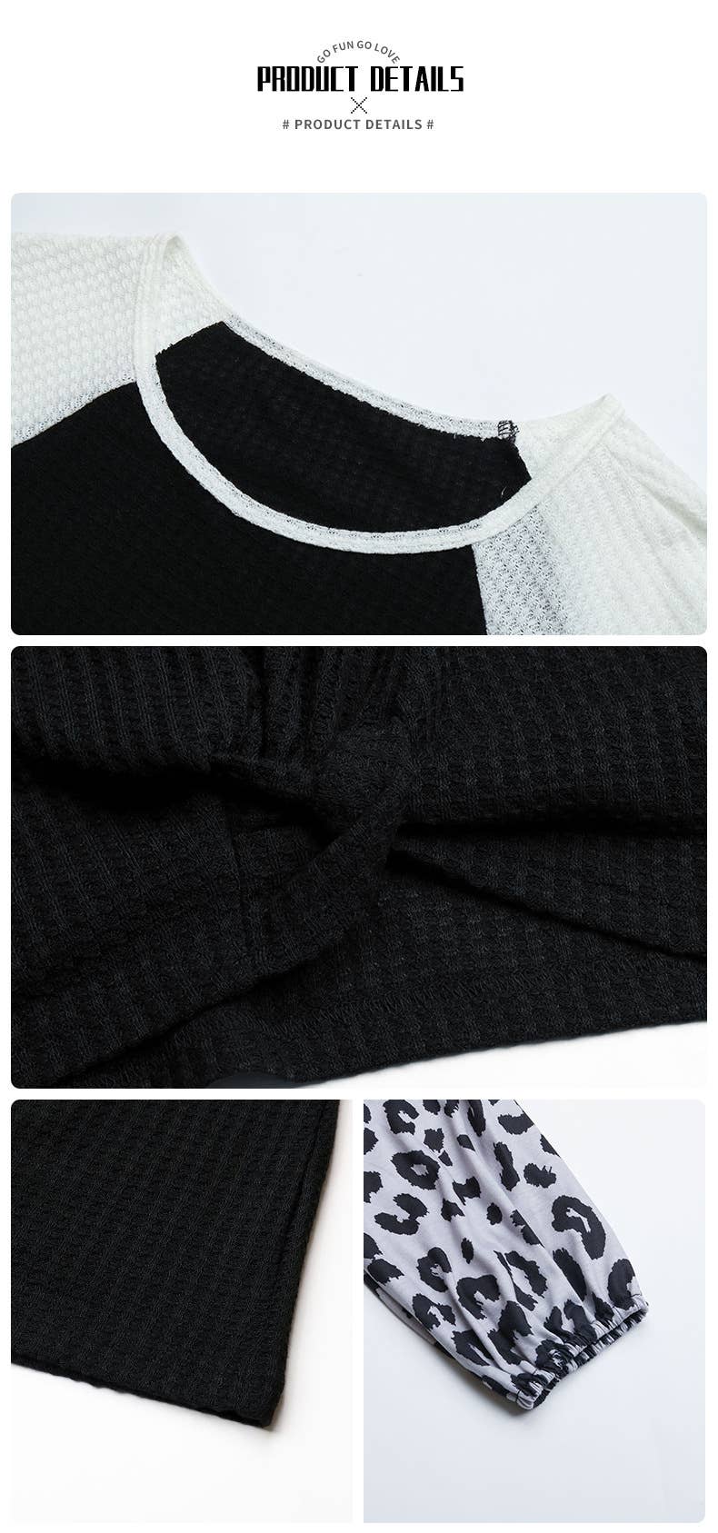 LEOPARD PRINT PATCHWORK LONG SLEEVE COLOR SWEATER