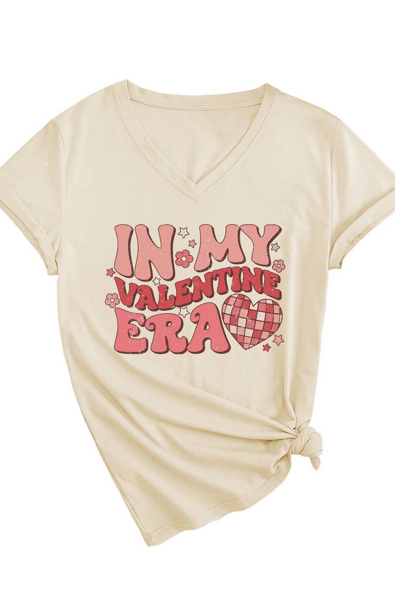 LETTER PRINTED V NECK SHORT SLEEVED T SHIRT