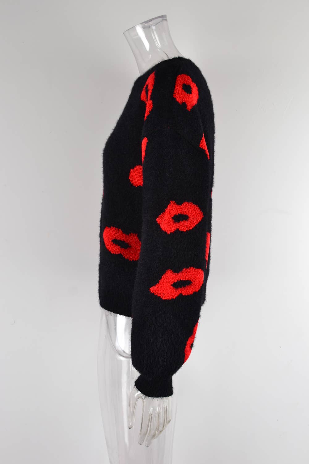 LIPS VALENTINE'S DAY SWEATER CREW NECK PULLOVER