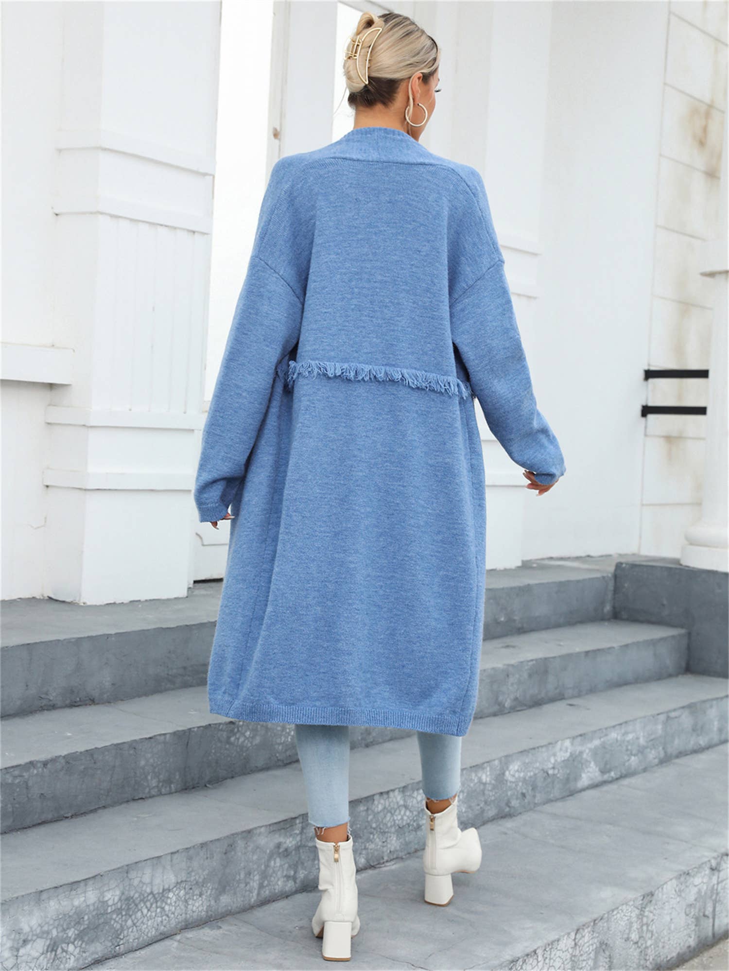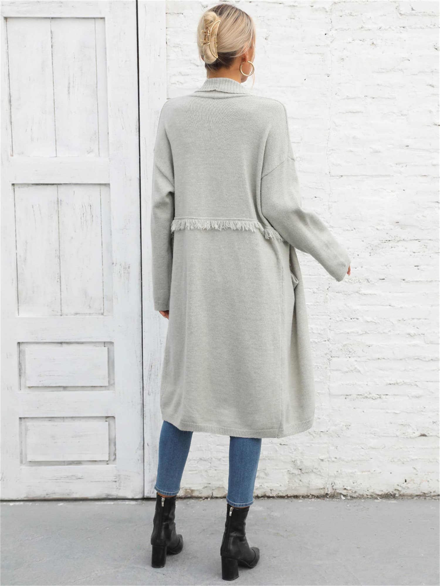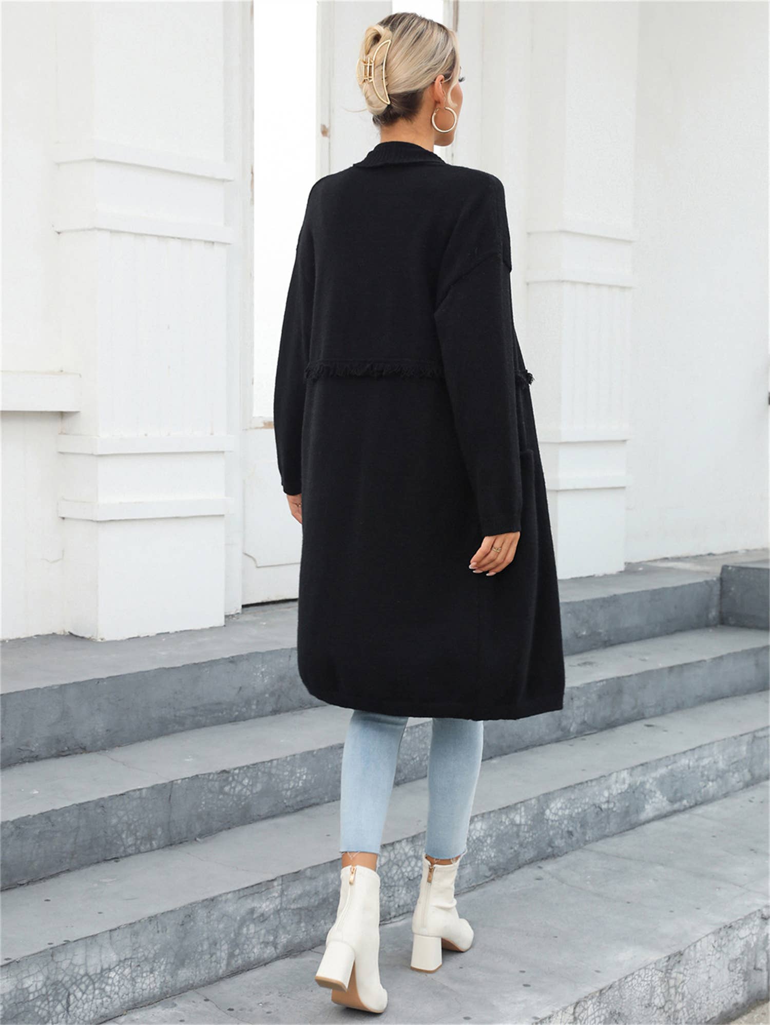 LONG CARDIGAN POCKET STYLE FRINGE COAT SWEATER